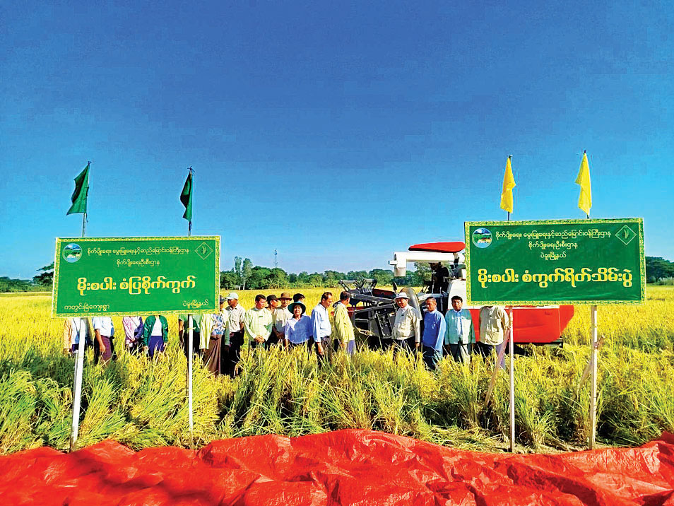 ပဲခူးမြို့နယ် ကတွင်းခြံကျေးရွာ ကွင်းအမှတ်-၆၃၀န၊ ဦးပိုင်အမှတ်-၅၊ စိုက်ဧက ၃ ဒသမ ၁၀ ဧကရှိ တောင်သူဦးညီညီအောင်၏ အောင်နိုင်တိုးစပါးစိုက်ကွက်အား အောက်တိုဘာ ၂၉ ရက် နံနက်ပိုင်းက စံကွက်ရိတ်သိမ်းပွဲပြုလုပ်သည်။