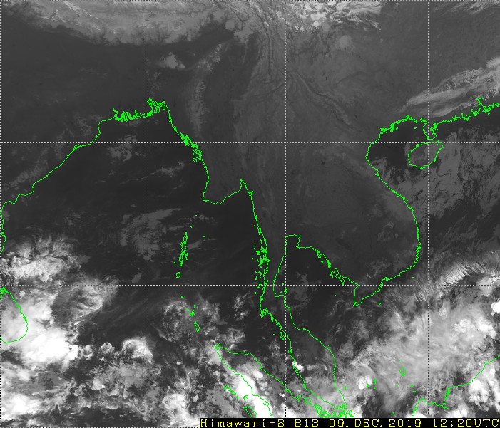 ၂၀၁၉ ခုနှစ်၊ ဒီဇင်ဘာလ (၉)ရက်နေ့ ည(၇:ဝ၀)နာရီအချိန် မိုးဇလမှ ထုတ်ပြန်ချက်အရ ဘင်္ဂလားပင်လယ်အော်တောင်ပိုင်း တွင် တိမ်အသင့်အတင့်မှ တိမ်ထူထပ်နေပြီး၊ ကပ္ပလီပင်လယ်ပြင်နှင့် ကျန်ဘင်္ဂလားပင်လယ်အော်တို့တွင် တိမ်အနည်းငယ် ဖြစ်ထွန်းနေပါသည်။