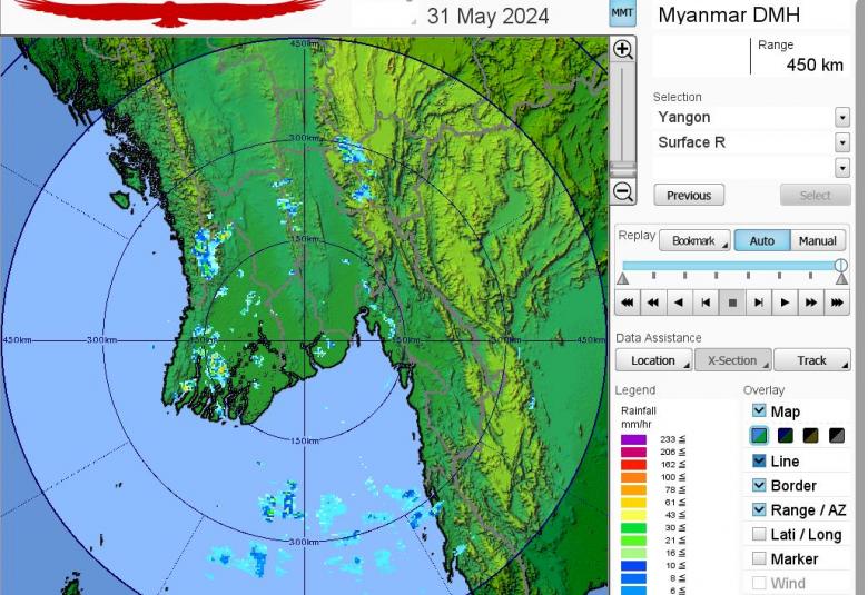 လာမည့်စနေ၊ တနင်္ဂနွေအားလပ်ရက်များအတွက် မိုးလေဝသခန့်မှန်းချက်။ နေပြည်တော်နှင့် မန္တလေးတိုင်းဒေသကြီးတို့တွင် နေရာစိပ်စိပ်နှင့် ရန်ကုန်တိုင်းဒေသကြီးတွင် နေရာအနှံ့အပြား မိုးထစ်ချုန်းရွာနိုင်ပါသည်။