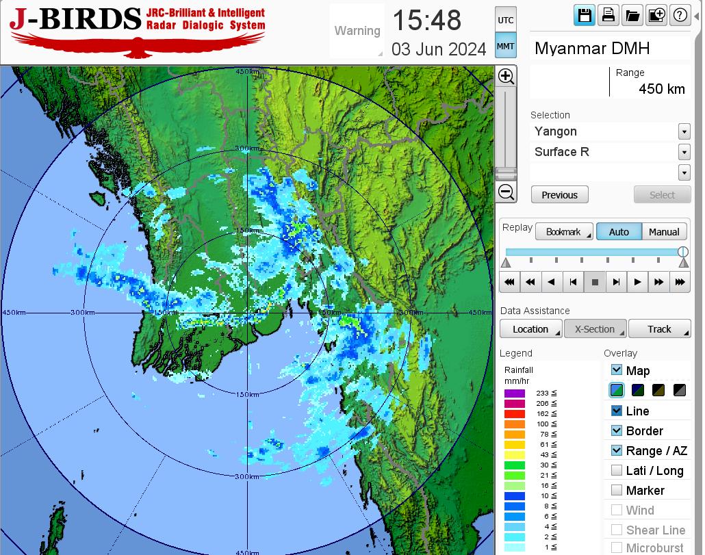 မိုးတိမ်တောင်ဖြစ်ပေါ်မှုအခြေအနေ။ စစ်ကိုင်းတိုင်းဒေသကြီးအထက်ပိုင်း၊ ပဲခူးတိုင်းဒေသကြီး၊ ရန်ကုန်တိုင်းဒေသကြီး၊ ဧရာဝတီတိုင်းဒေသကြီး၊ ရှမ်းပြည်နယ်၊ ချင်းပြည်နယ်၊ ရခိုင်ပြည်နယ်၊ ကရင်ပြည်နယ်နှင့် မွန်ပြည်နယ်တို့တွင် မိုးတိမ်တောင်များ ဖြစ်ထွန်းလျက်ရှိပါသည်။