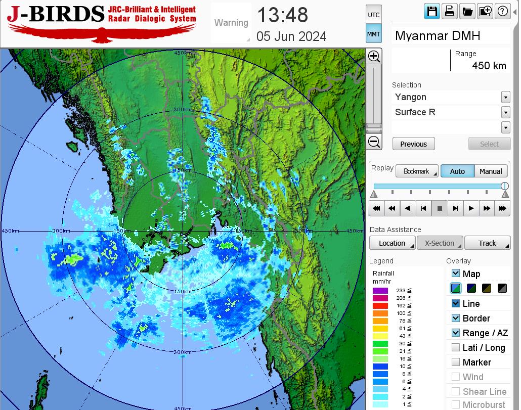 မိုးတိမ်တောင်ဖြစ်ပေါ်မှုအခြေအနေ။ ပဲခူးတိုင်းဒေသကြီး၊ ရန်ကုန်တိုင်းဒေသကြီး၊ ဧရာဝတီတိုင်းဒေသကြီး၊ ရခိုင်ပြည်နယ်နှင့် မွန်ပြည်နယ်တို့တွင် မိုးတိမ်တောင်များ ဖြစ်ထွန်းလျက်ရှိပါသည်။