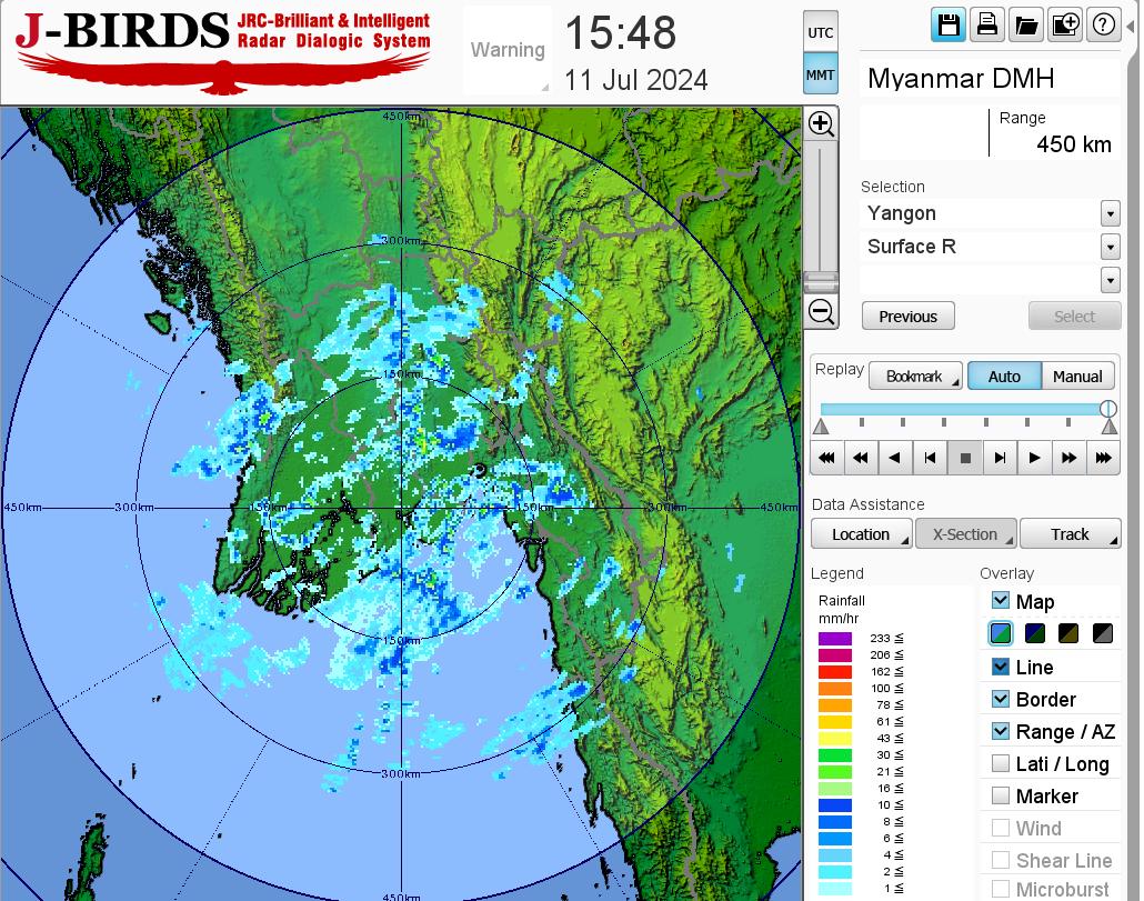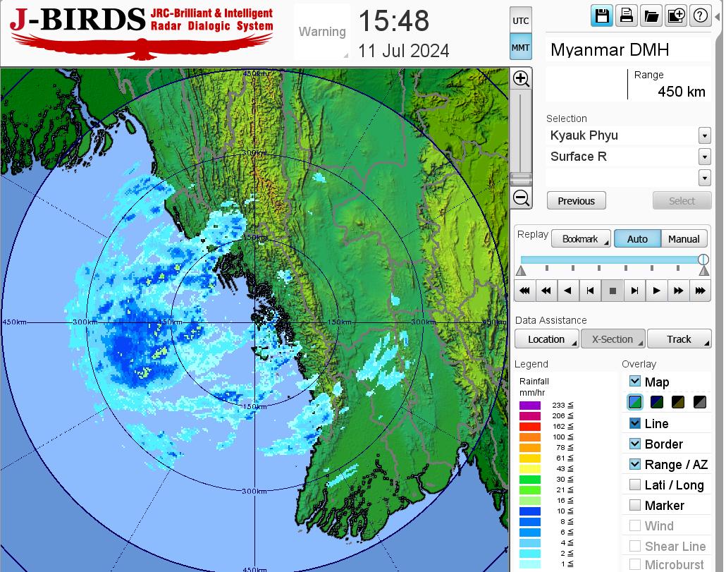 မိုးတိမ်တောင်ဖြစ်ပေါ်မှုအခြေအနေ။ ပဲခူးတိုင်းဒေသကြီး၊ ရန်ကုန်တိုင်းဒေသကြီး၊ ဧရာဝတီတိုင်းဒေသကြီး၊ တနင်္သာရီတိုင်းဒေသကြီး၊ ကရင်ပြည်နယ်နှင့် မွန်ပြည်နယ်တို့တွင် မိုးတိမ်တောင်များ ဖြစ်ထွန်းလျက်ရှိပါသည်။