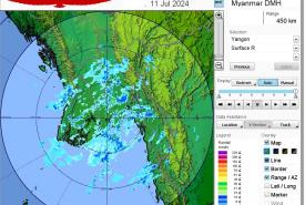 ရန်ကုန်မြို့နှင့် အနီးတစ်ဝိုက်အတွက် မနက်ဖြန်နံနက်အထိခန့်မှန်းချက်။ မိုးတစ်ကြိမ်၊ နှစ်ကြိမ်ထစ်ချုန်းရွာမည်။ ရွာရန်ရာနှုန်းပြည့် ဖြစ်ပါသည်။