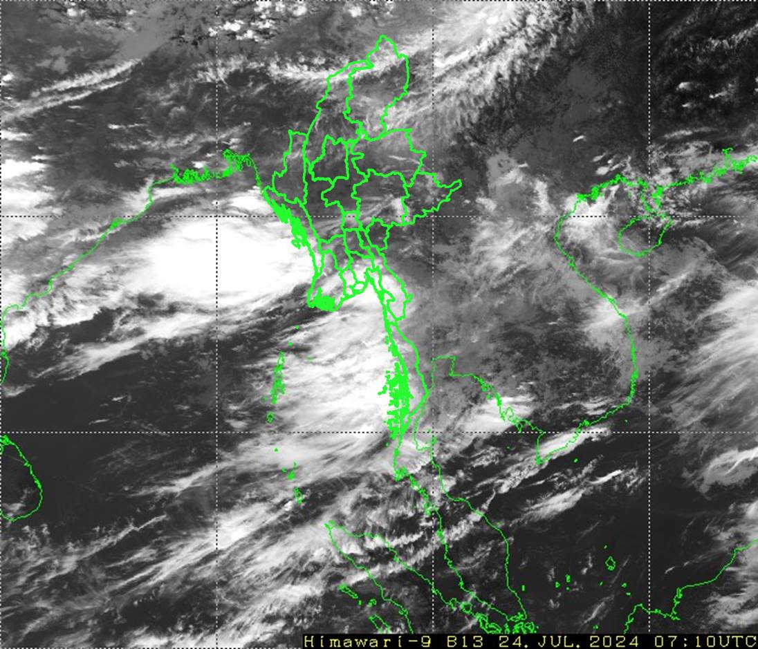 ယမန်နေ့နံနက်(၀၉:၃၀)နာရီအချိန်မှ ယနေ့နံနက်(၀၉:၃၀)နာရီအချိန်အထိ မိုးလေဝသ တိုင်းထွာချက်အကျဉ်းချုပ်။ လွန်ခဲ့သော(၂၄)နာရီအတွင်းက စစ်ကိုင်းတိုင်းဒေသကြီးအောက်ပိုင်းတွင် တိမ်အသင့်အတင့် ဖြစ်ထွန်းခဲ့ပါသည်။ မန္တလေးတိုင်းဒေသကြီးတွင် နေရာကွက်ကျား၊ စစ်ကိုင်းတိုင်းဒေသကြီးအထက်ပိုင်း၊ မကွေးတိုင်းဒေသကြီး၊ ကချင်ပြည်နယ်နှင့် ရှမ်းပြည်နယ် (မြောက်ပိုင်းနှင့် တောင်ပိုင်း) တို့တွင် နေရာကျဲကျဲ၊ ချင်းပြည်နယ်တွင် နေရာစိပ်စိပ်နှင့် ကျန်တိုင်းဒေသကြီးနှင့် ပြည်နယ်တို့တွင် နေရာအနှံ့အပြား မိုးထစ်ချုန်းရွာခဲ့ပြီး၊ ပဲခူးတိုင်းဒေသကြီး၊ တနင်္သာရီတိုင်းဒေသကြီး၊ ရခိုင်ပြည်နယ်၊ ကရင်ပြည်နယ်နှင့် မွန်ပြည်နယ်တို့တွင် ဒေသအလိုက် မိုးကြီးခဲ့ပါသည်။ မှတ်သားဖွယ်ရာ မိုးရေချိန်များမှာ ကျိုက်မရောမြို့တွင် ၇.၁၇ လက်မ၊ ချောင်းဆုံမြို့ တွင် ၇.၀၉ လက်မ၊ မုဒုံမြို့တွင် ၆.၆၁ လက်မ၊ ထားဝယ်မြို့တွင် ၆.၂၆ လက်မ၊ စစ်တွေမြို့တွင် ၅.၇၁ လက်မ၊ မော်လမြိုင်မြို့တွင် ၅.၅၉ လက်မ၊ မြိတ်မြို့တွင် ၅.၃၉ လက်မ၊ ကျောက်ဖြူမြို့တွင် ၄.၃၇ လက်မ၊ ပေါင်မြို့တွင် ၄.၂၁ လက်မ၊ ကော့ကရိတ်မြို့တွင် ၄.၁၇ လက်မနှင့် ကျိုက္ခမီမြို့တွင် ၄.၁၄ လက်မတို့ ဖြစ်ကြပါသည်။