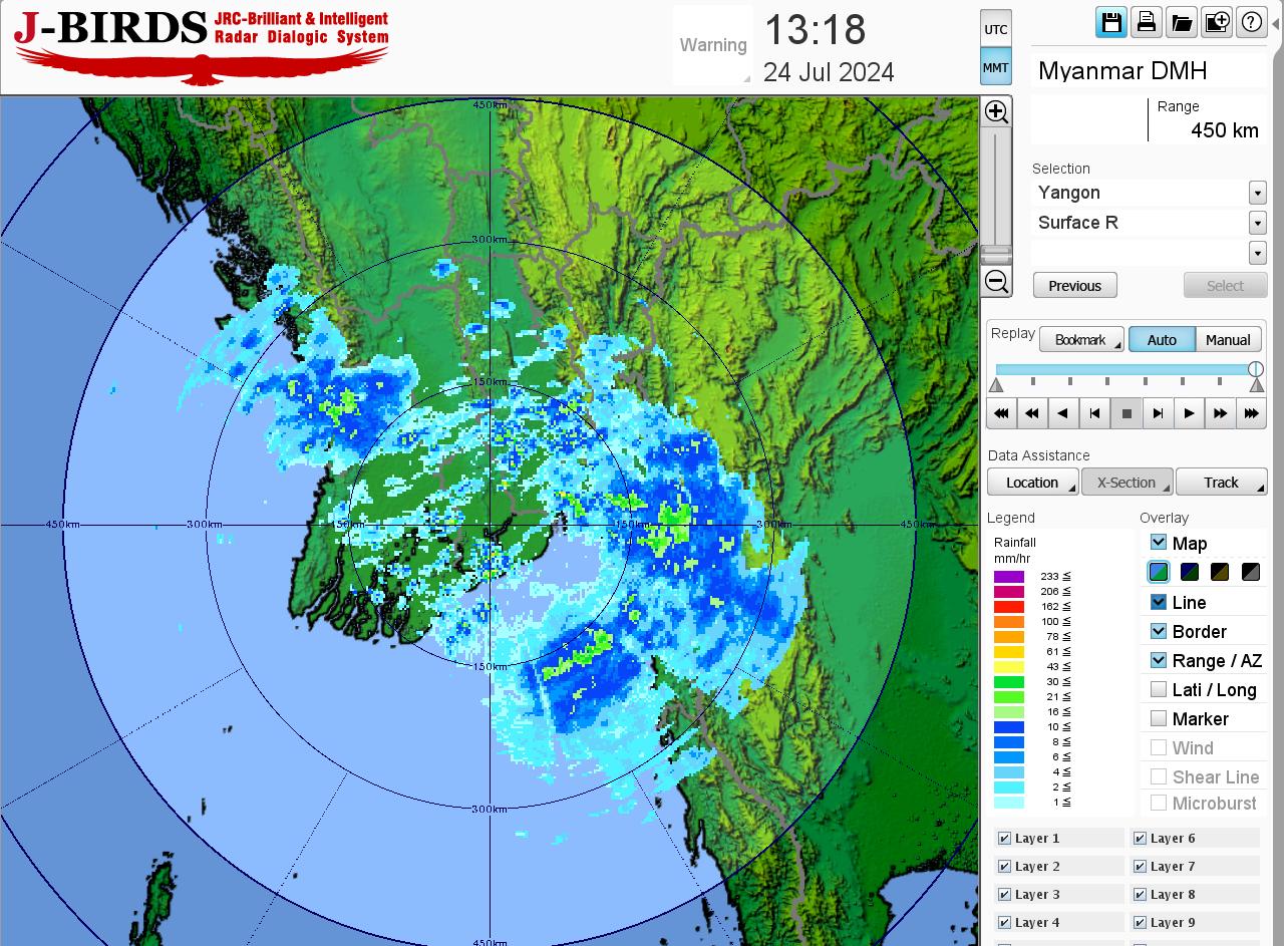 မိုးတိမ်တောင်ဖြစ်ပေါ်မှုအခြေအနေ။ ပဲခူးတိုင်းဒေသကြီး၊ ရန်ကုန်တိုင်းဒေသကြီး၊ ဧရာဝတီတိုင်းဒေသကြီး၊ တနင်္သာရီတိုင်းဒေသကြီး၊ ရခိုင်ပြည်နယ်၊ ကရင်ပြည်နယ်နှင့် မွန်ပြည်နယ်တို့တွင် မိုးတိမ်တောင်များ ဖြစ်ထွန်းလျက်ရှိပါသည်။