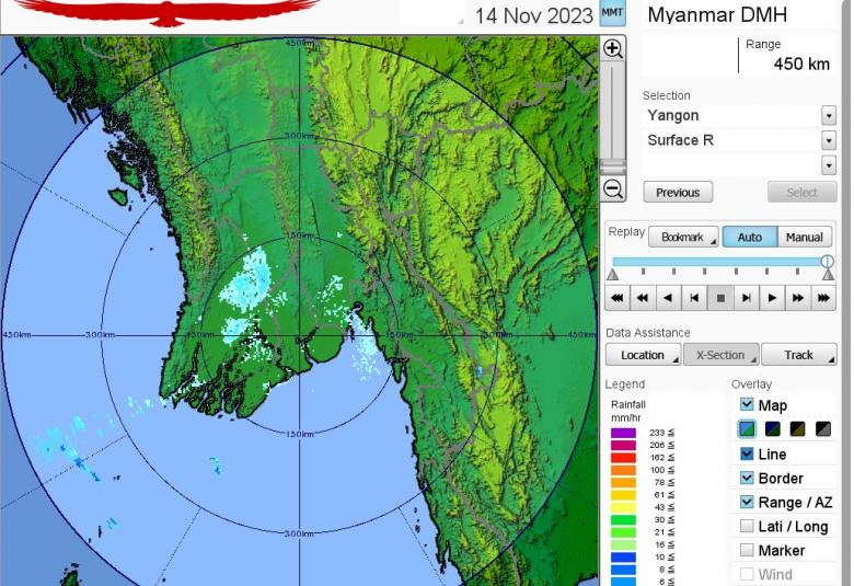 ယနေ့ညနေအထိ ခန့်မှန်းချက်အနေဖြင့် စစ်ကိုင်းတိုင်းဒေသကြီးနှင့် ကချင်ပြည်နယ်တို့တွင် တိမ်အသင့်အတင့် ဖြစ်ထွန်းမည်။ ပဲခူးတိုင်းဒေသကြီး၊ ရန်ကုန်တိုင်းဒေသကြီး၊ ဧရာဝတီတိုင်းဒေသကြီး၊ တနင်္သာရီတိုင်းဒေသကြီးနှင့် ရှမ်းပြည်နယ် (တောင်ပိုင်းနှင့် အရှေ့ပိုင်း) တို့တွင် နေရာကျဲကျဲ မိုးထစ်ချုန်းရွာပြီး၊ ကျန်တိုင်းဒေသကြီးနှင့် ပြည်နယ်တို့တွင် နေရာ ကွက်ကျား မိုးထစ်ချုန်းရွာမည်။ ရွာရန်ရာနှုန်း(၈၀) ဖြစ်သည်။