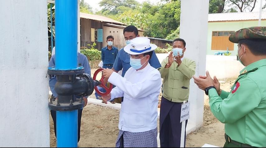 ဦးစွာ မြို့အနောက်ဘက်ခြမ်း တိုးချဲ့ရေပေးဝေရေးလုပ်ငန်းအား ပဲခူးတိုင်းဒေသကြီး အစိုးရအဖွဲ့ဝန်ကြီးချုပ် ဦးမျိုးဆွေဝင်း၊ လုံခြုံရေးနှင့်နယ်စပ်ရေးရာဝန်ကြီး ဗိုလ်မှူးကြီး အောင်သောင်းထိုက်၊ ခရိုင်စီမံအုပ်ချုပ်ရေးအဖွဲ့ဥက္ကဋ္ဌ ဦးစန်းဝင်းနှင့် မြို့မိမြို့ဖဦးတင်ဦးတို့မှ ဖဲကြိုးဖြတ်ဖွင့်လှစ်ပေးပြီး ဝန်ကြီးချုပ်မှ ဒေသခံပြည်သူများနှင့် ဌာနဆိုင်ရာများအား ရင်းရင်းနှီးနှီးတွေ့ဆုံကာ ရေရှားပါးသောမြို့ဖြစ်၍ ရေရရှိရေးလုပ်ငန်း ရေရှည်တည်တံ့အောင် ဝိုင်းဝန်းထိမ်းသိမ်း ဆောင်ရွက်သွားကြစေလိုကြောင်း၊ ယခုရရှိသောရေသည် သုံးရေအဆင့်သာဖြစ်၍ သန့်ရှင်းသော သောက်ရေအဆင့်ထိရရှိစေရန် ဆောင်ရွက်ပေးသွားမည်ဖြစ်ကြောင်း ပြောကြားခဲ့သည်။