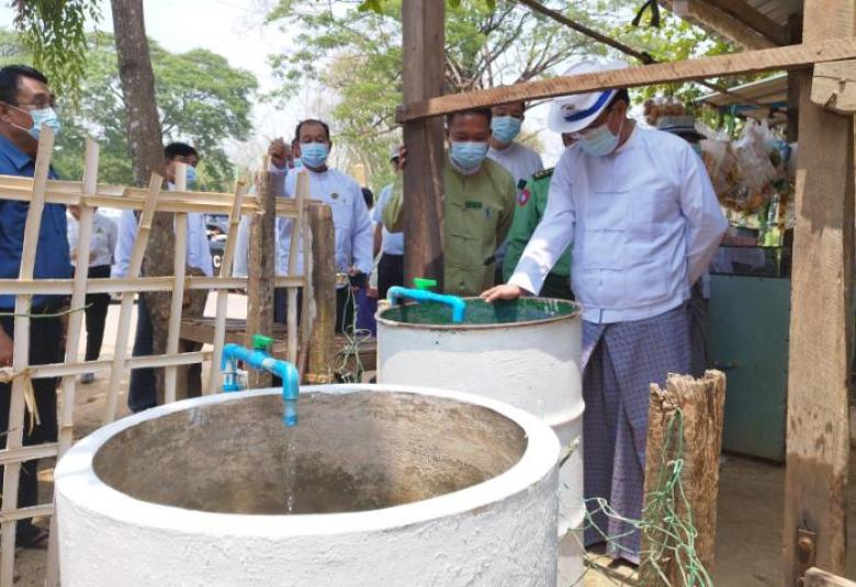 ထို့နောက် ဝန်ကြီးချုပ်မှ မြို့အနောက်ဘက်ခြမ်း ရေပို့လွှတ်ပေးသည့် ရေဘားအား စတင်ဖွင့်လှစ်ပေးပြီး ဒေသခံပြည်သူများ ရေရရှိသုံးစွဲနေမှုအခြေအနေများကို ရင်းရင်းနှီးနှီး တွေ့ဆုံမေးမြန်း၍ လိုအပ်ချက်များအား သက်ဆိုင်ရာ ဌာနဆိုင်ရာအကြီးအကဲများနှင့် ပေါးစပ်ညှိနှိုင်း ဖြေရှင်းပေးခဲ့သည်။
