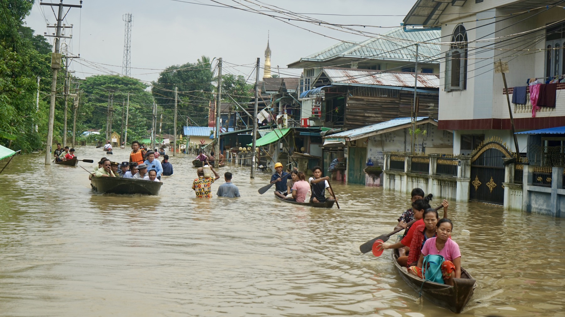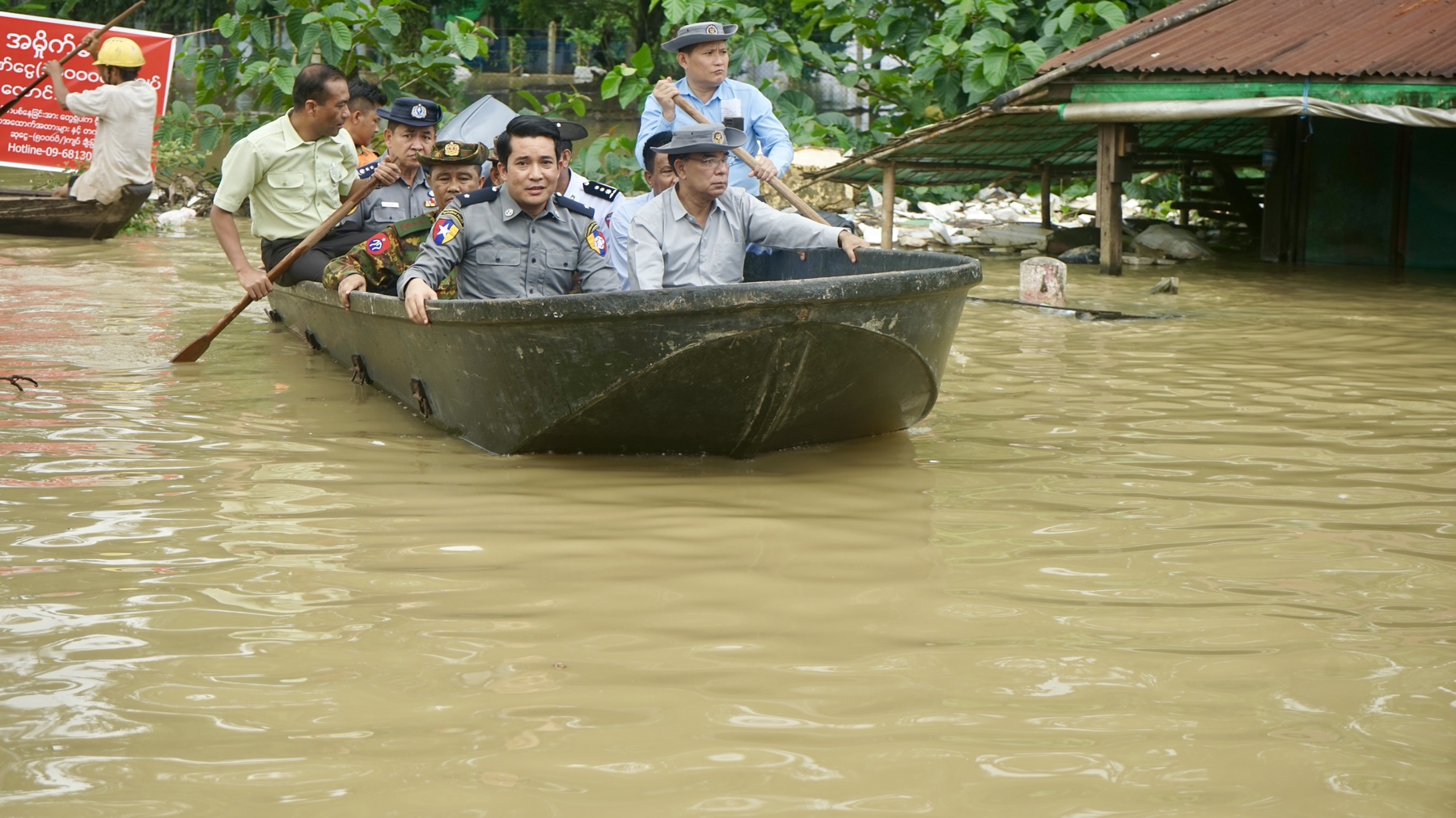 ထို့နောက် တိုင်းဒေသကြီး ဝန်ကြီးချုပ် ဦးမျိုးဆွေဝင်း နှင့်အဖွဲ့သည် ပဲခူးမြို့၊ ဇိုင်းဂနိုင်းတောင်ပိုင်း ရပ်ကွက်အတွင်း ရေဝင်ရောက်မှုများအား စက်လှေများဖြင့် လှည့်လည်ကြည့်ရှုစစ်ဆေးခဲ့ပြီး ရေပြန်လည် ကျဆင်းလာပြီဖြစ်သော်လည်း ပြည်သူများ ရေဘေးအန္တရာယ်ဖြစ်ပွားမှုမရှိစေရေး၊ ယာယီရေဘေး ကယ်ဆယ်ရေးစခန်းအလိုက် ချက်ပြုတ်စားသောက်နိုင်ရေး လိုအပ်ချက်များ ဖြည့်ဆည်းပေးပြီး ရပ်ကွက်အတွင်း ကျန်ရှိသူများ အချိန်မီထမင်းထုပ်ရောက်ရှိစေရေးနှင့် ရေကျသွားသည့် ရပ်ကွက်/ကျေးရွာများတွင် တပ်မတော်သားများ၊ ဌာနဆိုင်ရာများ စုပေါင်းသန့်ရှင်းရေးပြုလုပ်ခြင်းလုပ်ငန်းများ အချိန်နှင့်တစ်ပြေးညီ ဆောင်ရွက်နိုင်ရန် တာဝန်ရှိသူများအား လမ်းညွှန်မှာကြားခဲ့သည်။