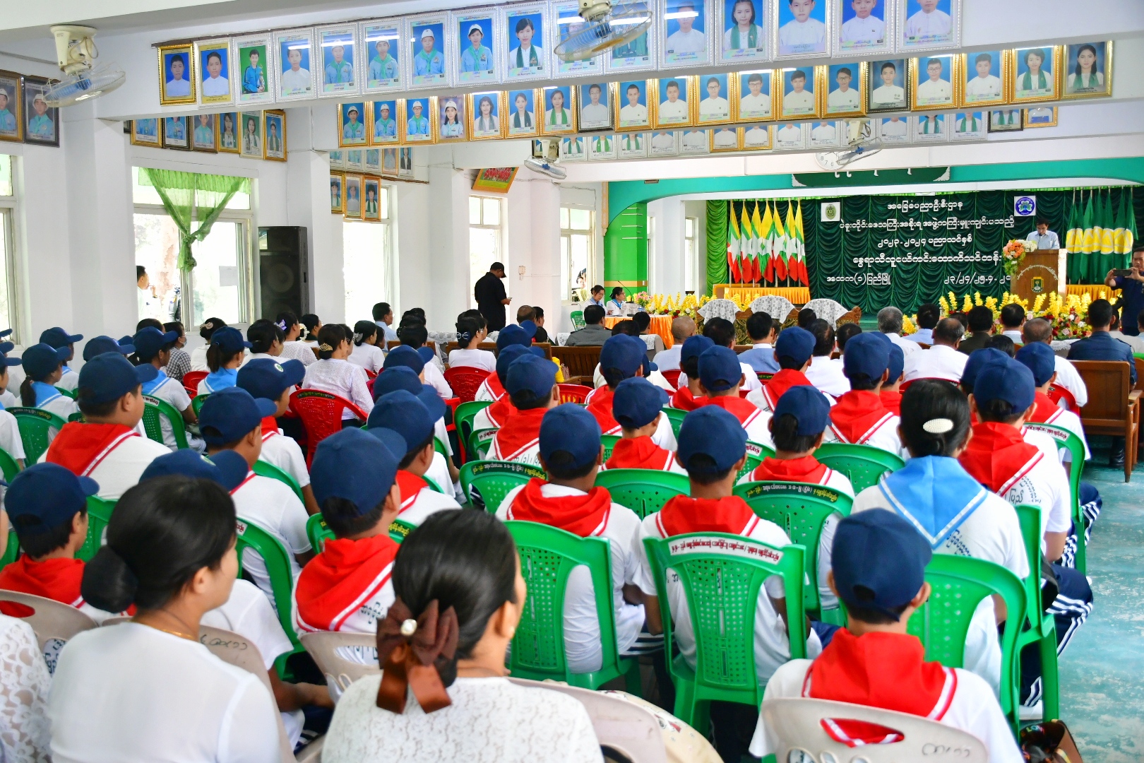 ပဲခူးတိုင်းဒေသကြီး ဝန်ကြီးချုပ် ဦးမျိုးဆွေဝင်းသည် တိုင်းဒေသကြီး အစိုးရအဖွဲ့ဝန်ကြီးများ၊ ဒေသကွပ်ကဲမှုစစ်ဌာနချုပ်(ပြည်)မှ ဒေသကွပ်ကဲရေးမှူးနှင့် တိုင်း/ ခရိုင်/ မြို့နယ်အဆင့် ဌာနဆိုင်ရာတာဝန်ရှိသူများနှင့်အတူ ယနေ့နံနက်ပိုင်းက ပြည်မြို့ အ.ထ.က(၁)၊ သိရီရတနာခန်းမ၌ တိုင်းဒေသကြီးအစိုးရအဖွဲ့က ကြီးမှူးကျင်းပသည့် ၂၀၂၃-၂၀၂၄ ပညာသင်နှစ် “နွေရာသီလူငယ်ကင်းထောက်သင်တန်း” ဖွင့်ပွဲအခမ်းအနားသို့ တက်ရောက်အားပေး ထောက်ပံ့ချီးမြှင့်သည်။