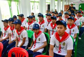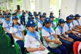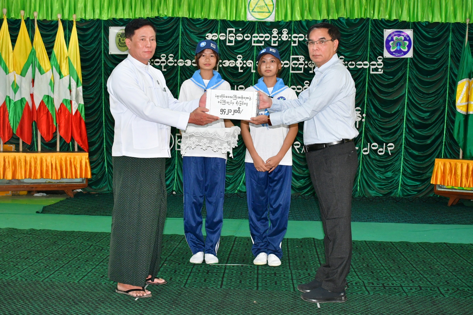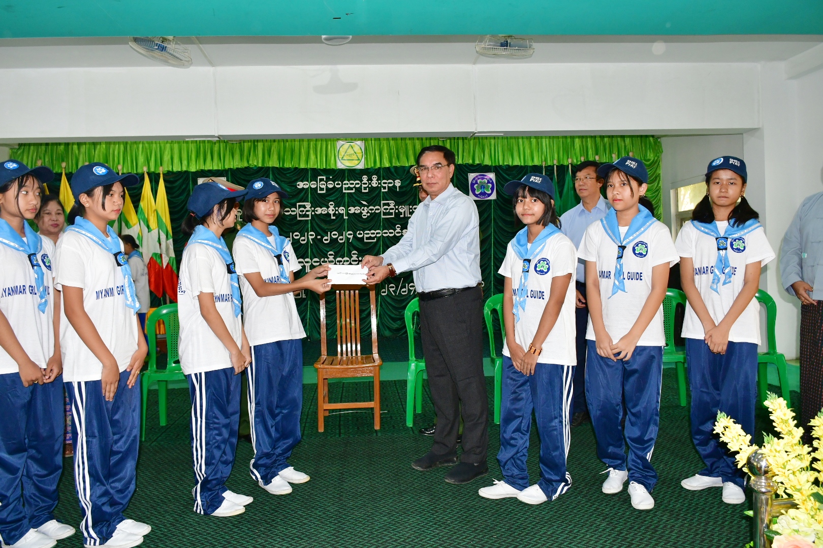 ရှေးဦးစွာ တိုင်းဒေသကြီးဝန်ကြီးချုပ်က တိုင်းဒေသကြီးအတွင်း နွေရာသီ လူငယ်ကင်းထောက်သင်တန်းများ ဖွင့်လှစ်ရခြင်းနှင့်ပတ်သက်၍ အဖွင့်အမှာစကား‌ပြောကြားပြီး သင်တန်းအတွက် ထောက်ပံ့ငွေကျပ် ၅၄၂၁၂၀၀ အား ပဲခူးတိုင်းဒေသကြီး(အနောက်ပိုင်း) တိုင်းခွဲပညာရေးမှူး ဦးတင်ယုထံ ပေးအပ်သည်။