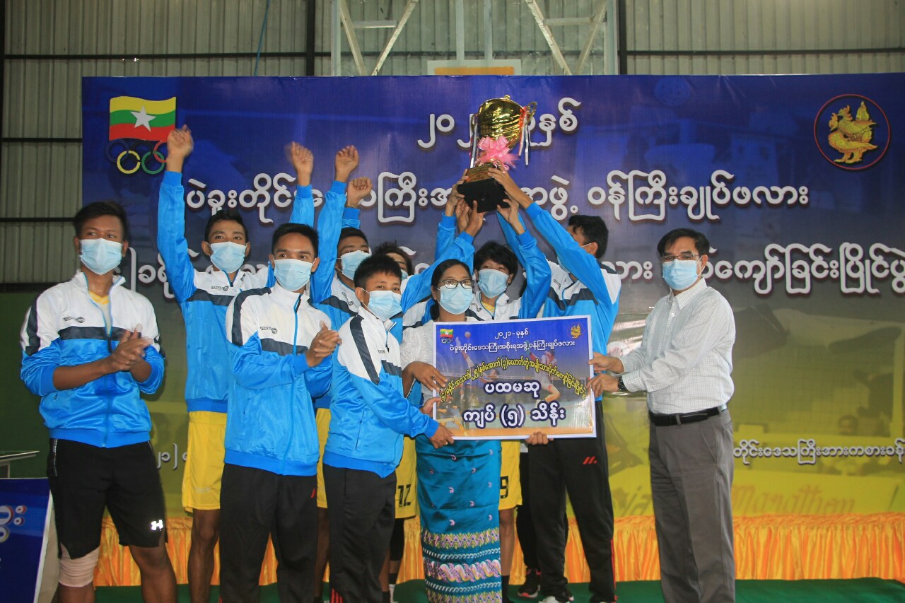 ယင်းနောက် အမျိုးသားနှစ်ယောက်တွဲ ပိုက်ကျော်ခြင်းပြိုင်ပွဲ ပထမဆုရရှိသော ပြည်ခရိုင် (ခ) အသင်းကို စီးပွားရေးရာဝန်ကြီးကလည်းကောင်း၊ အမျိုးသား သုံးယောက်တွဲ ပိုက်ကျော်ခြင်းပြိုင်ပွဲတွင် ပထမဆုရရှိသော ပြည်ခရိုင် (ခ) အသင်းကို ပဲခူးတိုင်းဒေသကြီး ဝန်ကြီးချုပ် ဦးမျိုးဆွေဝင်းက လည်းကောင်း ငွေသားဆုများနှင့် ဆုဖလားများ ပေးအပ်ချီးမြှင့်ကြသည်။