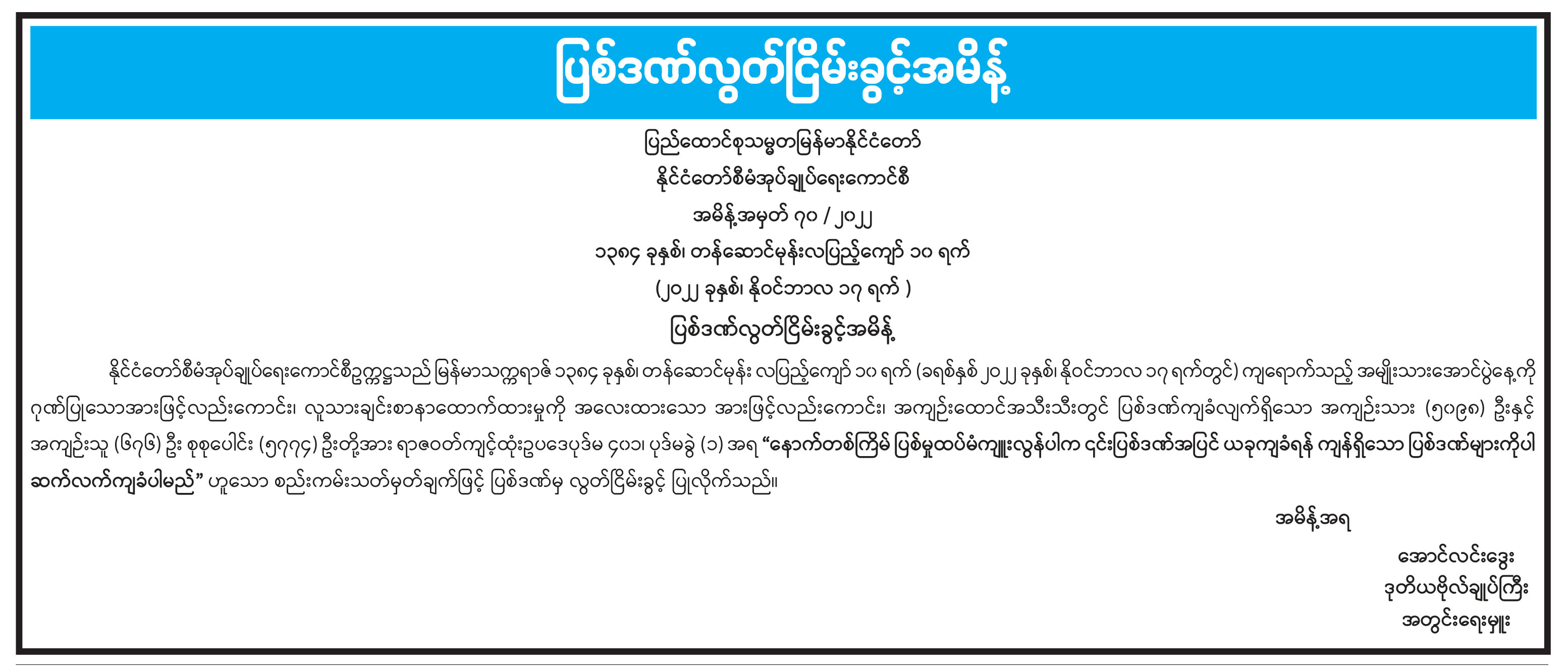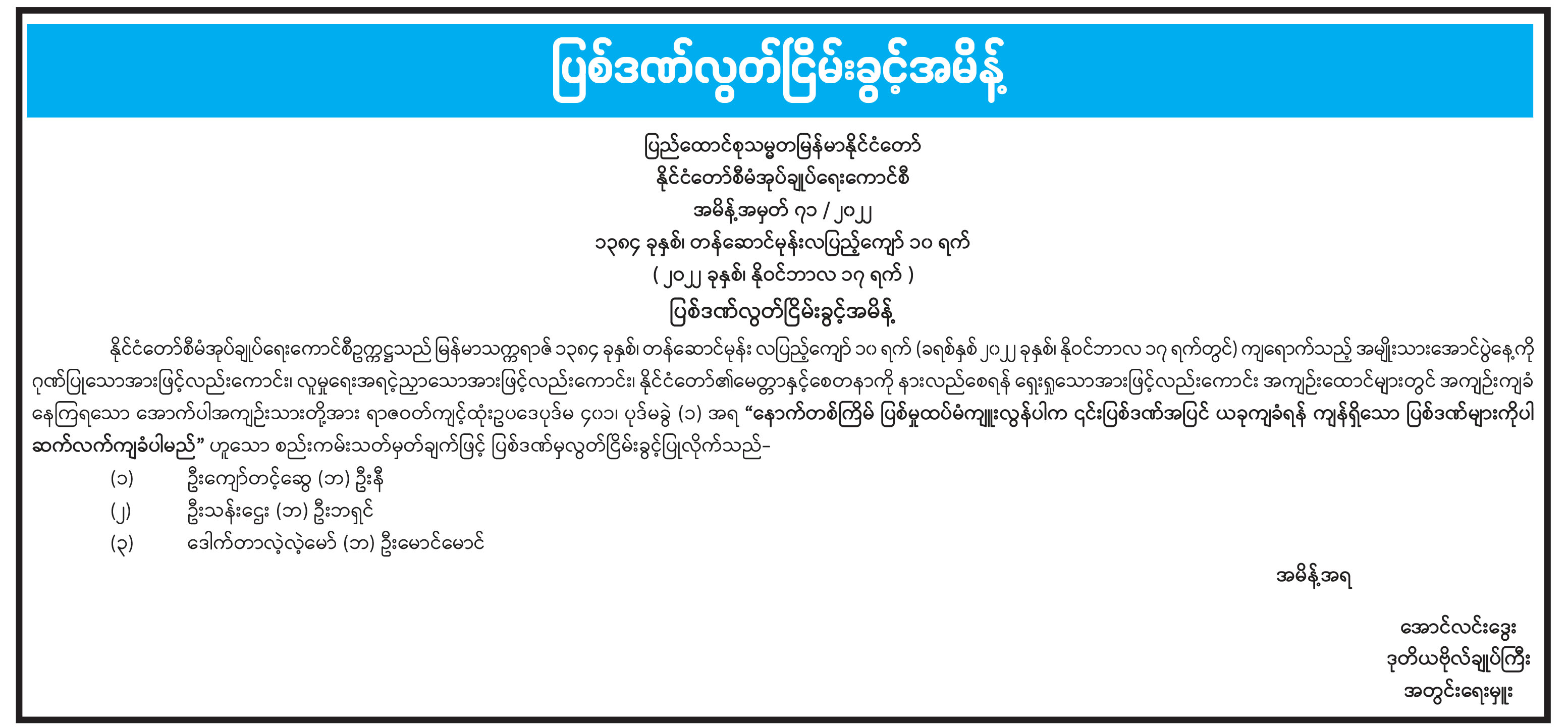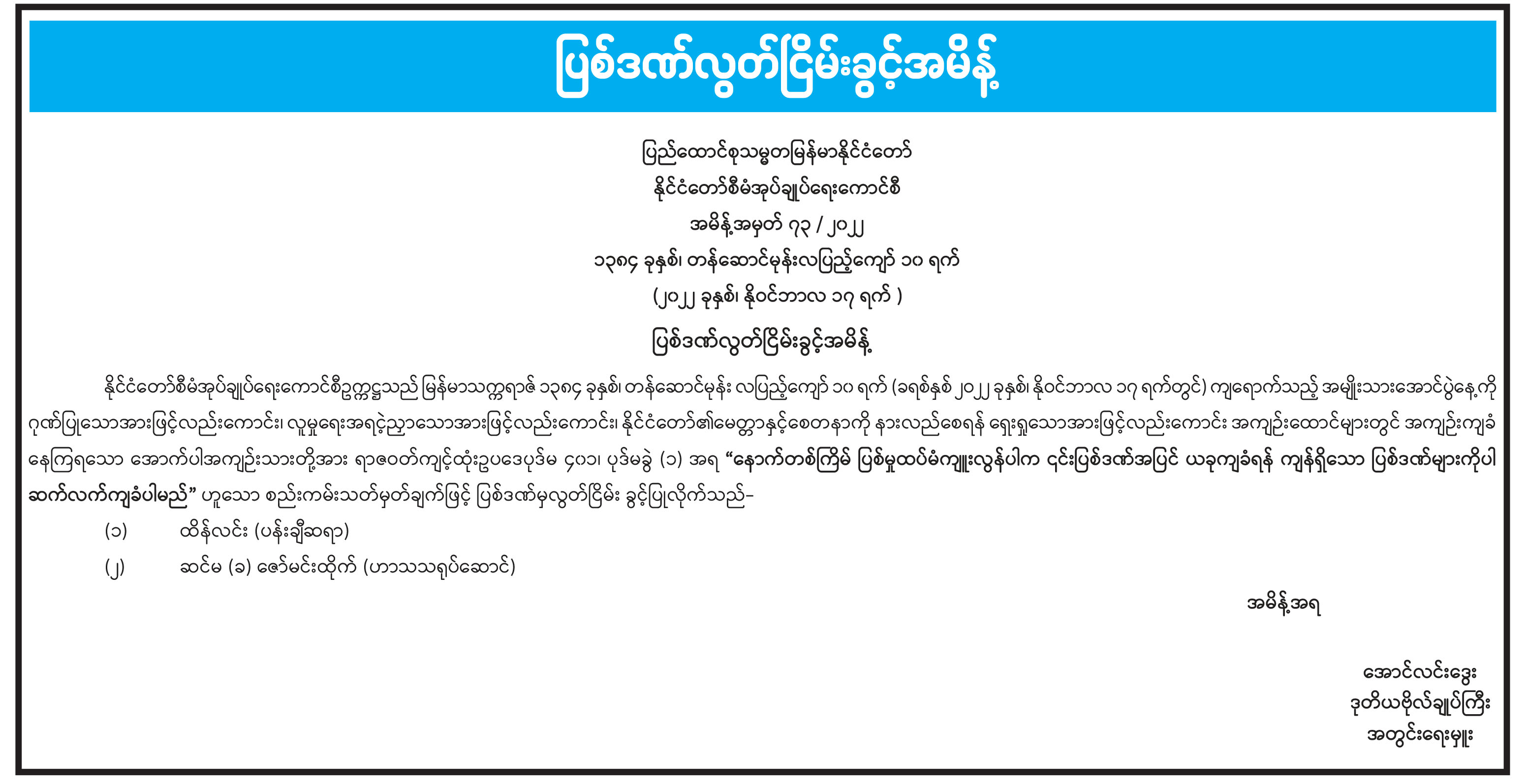 ပြည်ထောင်စုသမ္မတမြန်မာနိုင်ငံတော် ယာယီသမ္မတ နိုင်ငံတော်လုံခြုံရေးနှင့်အေးချမ်းသာယာရေးကော်မရှင်ဥက္ကဋ္ဌ ဗိုလ်ချုပ်မှူးကြီး သတိုးမဟာသရေစည်သူ သတိုးသီရိသုဓမ္မ မင်းအောင်လှိုင်၏ ၂၀၂၆ ခုနှစ် နှစ်သစ်ကူးနှုတ်ခွန်းဆက်စကား