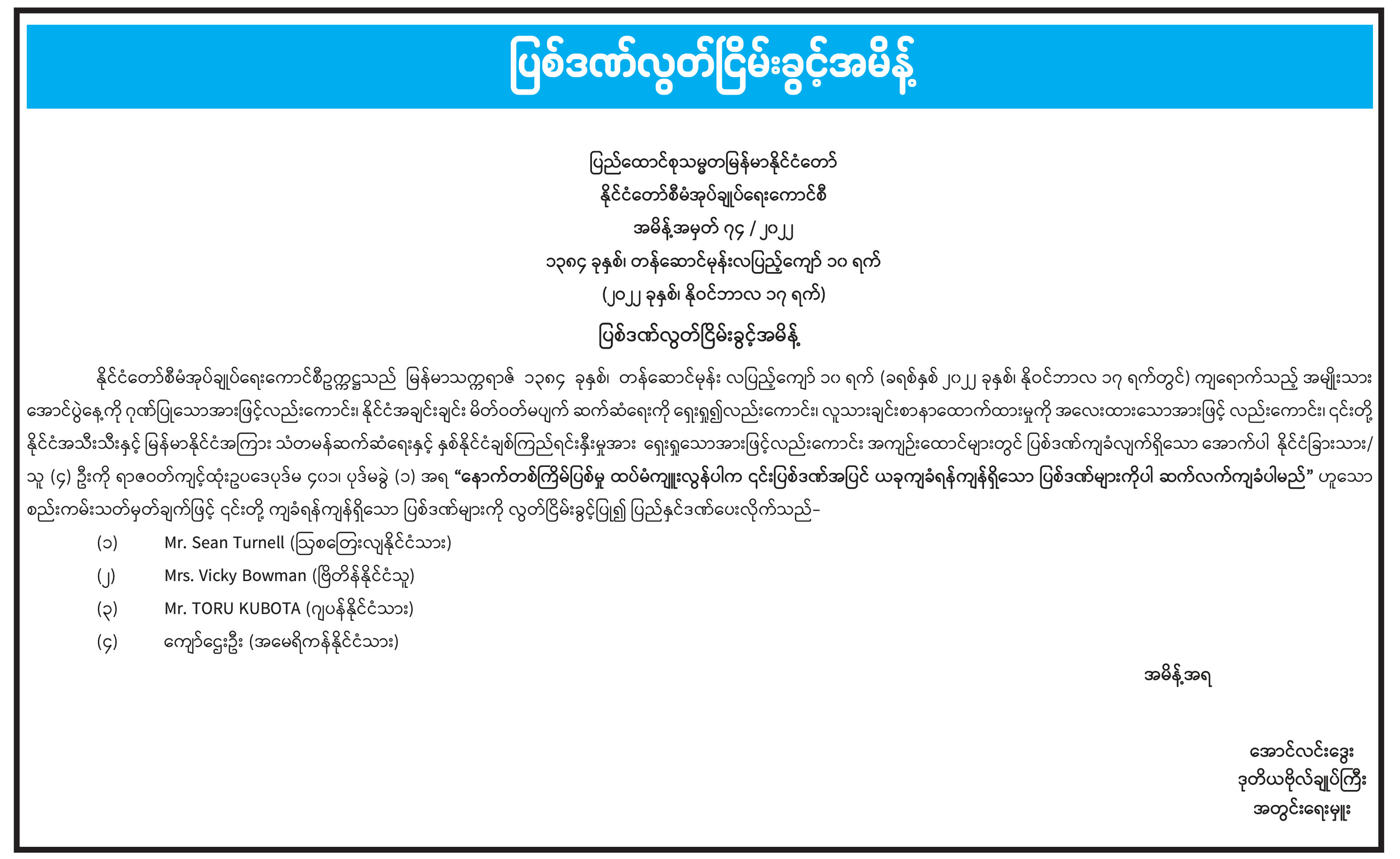 နယ်စပ်ပဋိပက္ခများ အဆုံးသတ်ရေး ထိုင်းနှင့် ကမ္ဘောဒီးယားနိုင်ငံတို့ အပစ်အခတ်ရပ်စဲရေး သဘောတူညီချက်သစ် လက်မှတ်ရေးထိုး