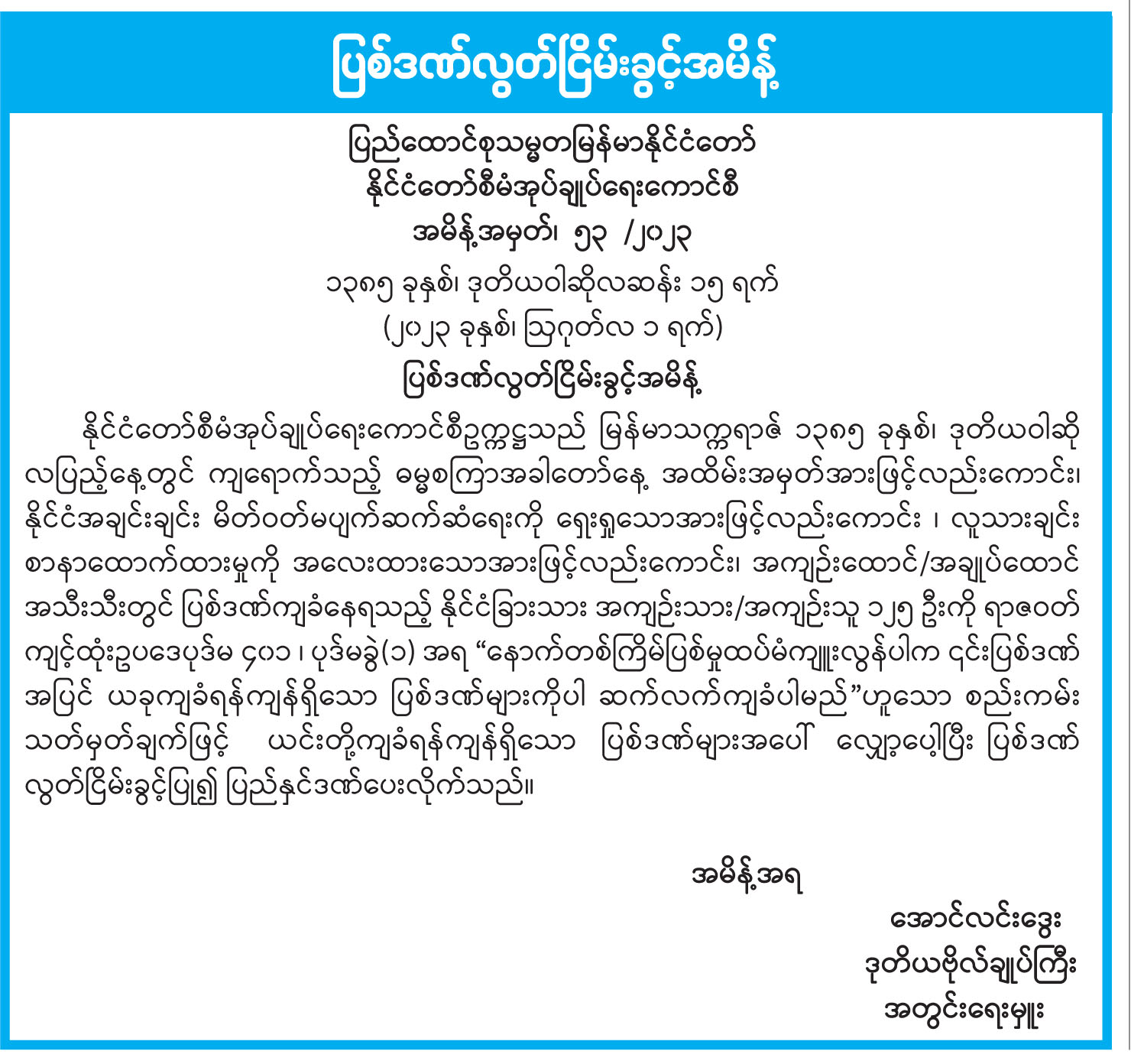 အပြည်ပြည်ဆိုင်ရာတရားရုံးမှာ ဂမ်ဘီယာနှင့် မြန်မာတို့အကြား တရားရင်ဆိုင်နေခြင်းနှင့် ပတ်သက်၍ ကြားနာပွဲတွင် မြန်မာနိုင်ငံ၏ ကိုယ်စားလှယ်၊ နိုင်ငံတော်သမ္မတရုံးဝန်ကြီးဌာန (၂) ပြည်ထောင်စု ဝန်ကြီး ဦးကိုကိုလှိုင် ပြောကြားသည့် မိန့်ခွန်း