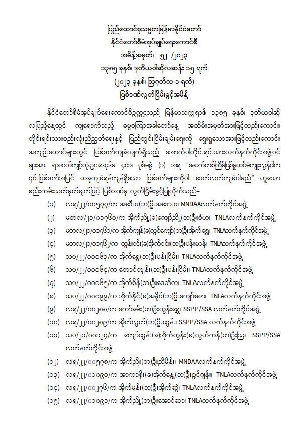 ပြစ်ဒဏ်လွတ်ငြိမ်းခွင့်အမိန့် (အမိန့်အမှတ်၊ ၅၂/၂၀၂၃)