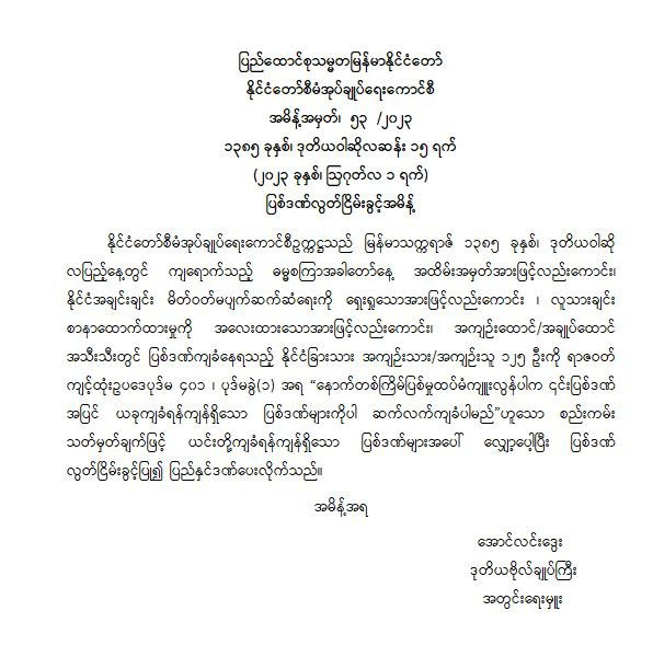 ပြစ်ဒဏ်လွတ်ငြိမ်းခွင့်အမိန့် (အမိန့်အမှတ်၊ ၅၃/၂၀၂၃)