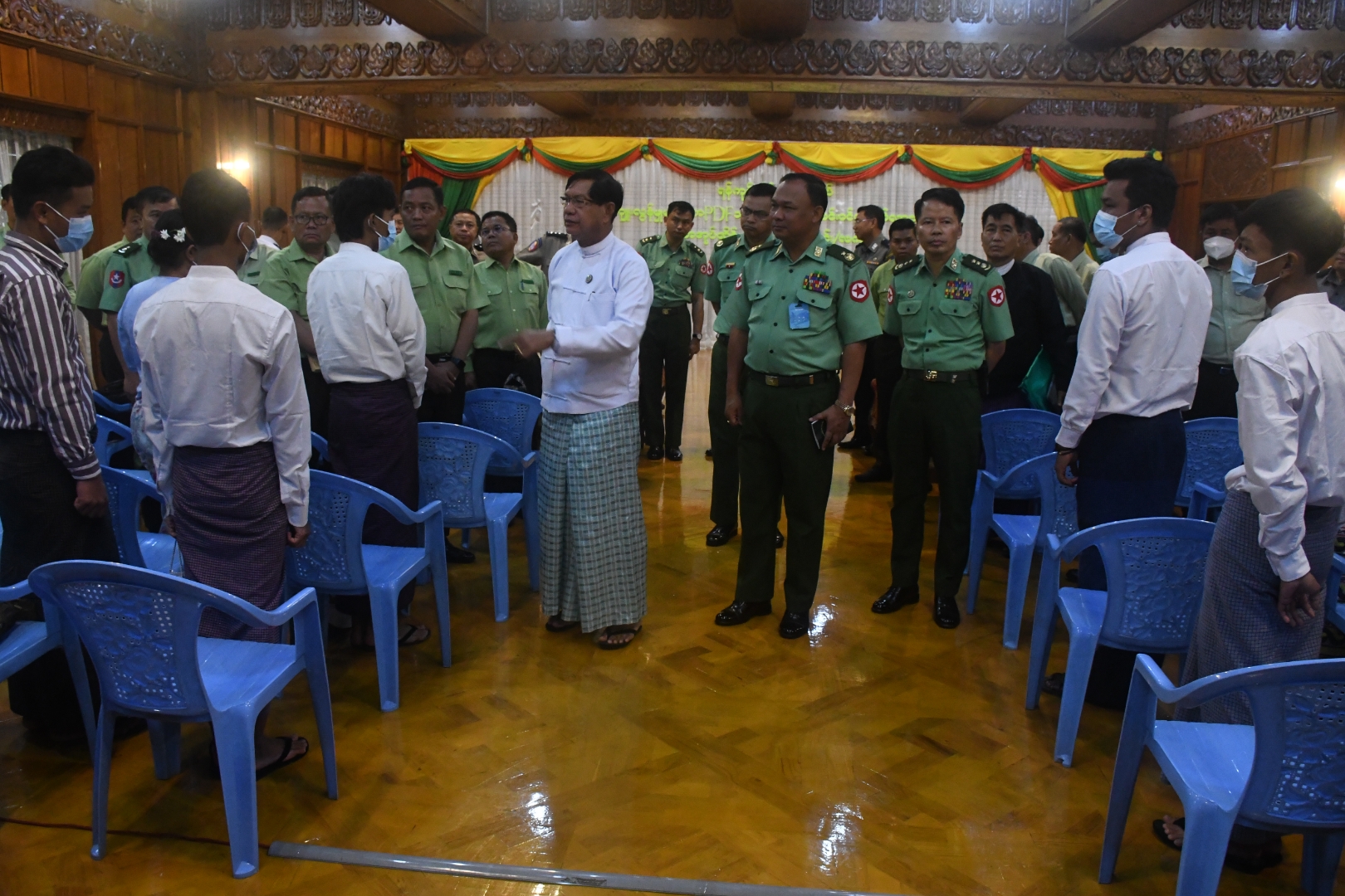 ရှေးဦးစွာ ရန်ကုန်တိုင်းဒေသကြီး ဝန်ကြီးချုပ် ဦးစိုးသိန်းက အဖွင့်အမှာစကားပြောကြားရာ PDF အပါအဝင် အဖွဲ့အစည်းအမျိုးမျိုးအမည်ခံ၍ လက်နက်ကိုင် ဆန့်ကျင်လျက်ရှိသော အဖွဲ့အစည်းများမှ ဥပဒေဘောင်အတွင်း ဝင်လိုသူများနှင့် ပတ်သက်၍ နိုင်ငံတော်၏ ရှေ့လုပ်ငန်းစဉ်များတွင် ပါဝင်ပူးပေါင်း ဆောင်ရွက်နိုင်ရေး သတ်မှတ်စည်းကမ်းချက်များနှင့်အညီ ဥပဒေဘောင်အတွင်းသို့ လက်နက်အပ်နှံပြီး ပြည်သူဘဝသို့ ပြန်လည်ဝင်ရောက်ခြင်းပြုမည်ဆိုပါက ကြိုဆိုလက်ခံသွားမည်ဖြစ်ကြောင်း နိုင်ငံပိုင်သတင်းစာများ၊ ရုပ်မြင်သံကြားမျာမှတစ်ဆင့် နေ့စဉ် ထုတ်ပြန်ကြေညာပေးလျက်ရှိပြီး တိုင်းဒေသကြီးနှင့် ပြည်နယ်အသီးသီးမှာ ဥပဒေဘောင်အတွင်း ပြန်လည်ဝင်ရောက်လာသူများကို ၎င်းတို့၏ မိဘအုပ်ထိန်းသူများထံ စနစ်တကျ လွှဲပြောင်းအပ်နှံ ဆောင်ရွက်ပေးလျက်ရှိရာ ရန်ကုန်တိုင်းဒေသကြီးအနေဖြင့် ပြစ်မှုကျူးလွန်မှုမရှိသော PDF သင်တန်းဆင်း အလင်းဝင်ရောက်လာသူ ၅၅ ဦးကို စနစ်တကျလက်ခံ၍ မိဘအုပ်ထိန်းသူများထံ လွှဲပြောင်းပေးခဲ့ကြောင်း၊ ယခု ပြစ်မှုကျူးလွန်မှုမရှိသော PDF သင်တန်းဆင်း အလင်းဝင်ရောက်လာသူ ခနစ်ဦးကို မိဘအုပ်ထိန်းသူများထံ ဆက်လက်လွှဲပြောင်း ပေးအပ်သွားမှာဖြစ်ပြီး ယခုဆိုလျှင် အလင်းဝင်ရောက်လာသူ စုစုပေါင်း ၆၂ ဦးအား လွှဲပြောင်းပေးအပ်နိုင်ခဲ့ပြီး ဖြစ်ကြောင်း ပြောကြားသည်။