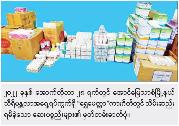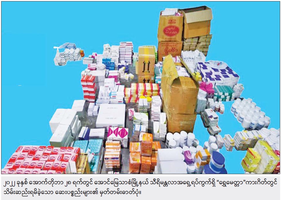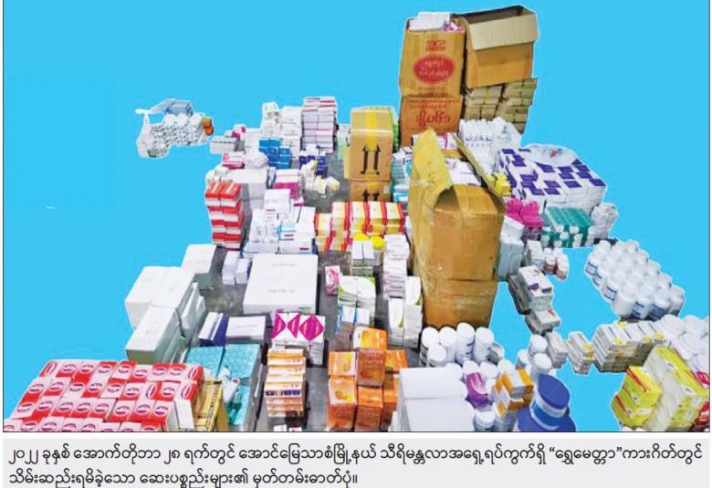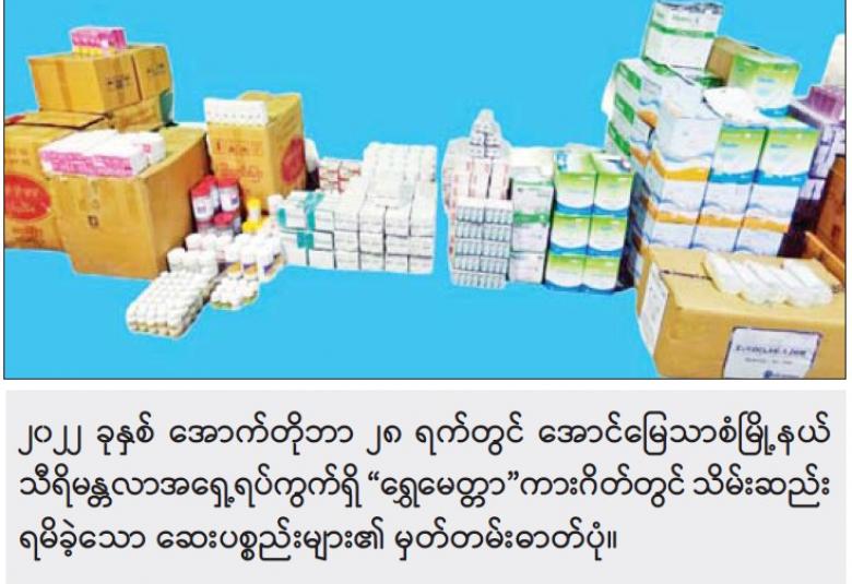 အထက်ပါ ဖြစ်စဉ်တွင် တရားခံ ကျား လေးဦး၊ မ လေးဦး ပေါင်း ရှစ်ဦးတို့ကို ဖမ်းဆီးရမိ ခဲ့ပြီး မေ့ဆေးစက် တစ်လုံး၊ ဆေးပစ္စည်းမျိုးစုံ ကတ်ထူဖာ ၁၁၁ ဖာ၊ လျှပ်စစ်ပစ္စည်းဖာ ၁၄ ဖာ၊ အဝတ် အထည်အိတ် ၂၀ ၊ အခြားလူသုံး ကုန်ပစ္စည်းမျိုးစုံ ၃၇ ဖာ တို့ကို သိမ်းဆည်းရမိခဲ့သည်။