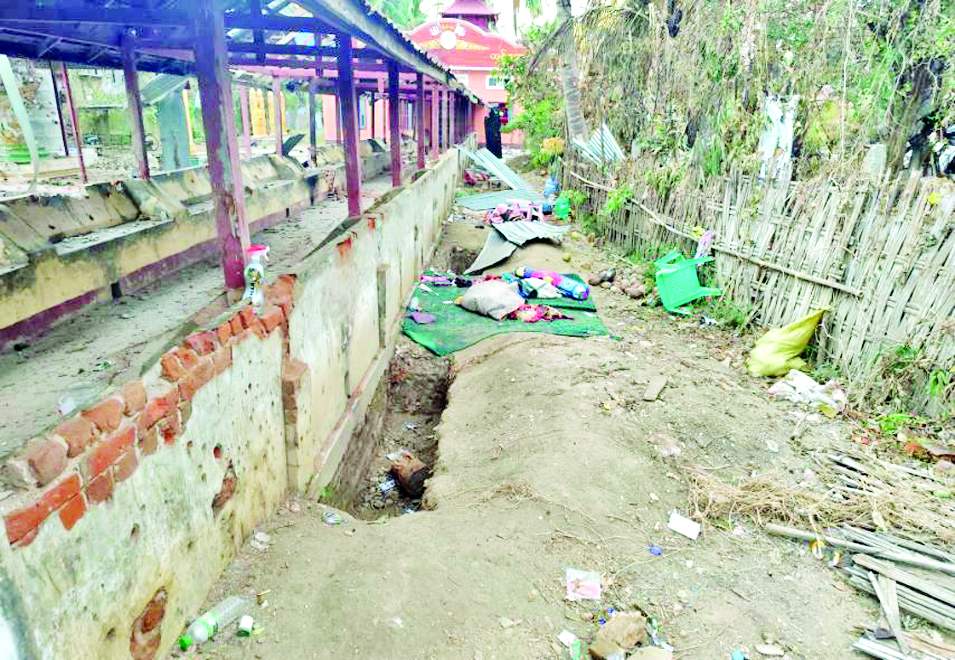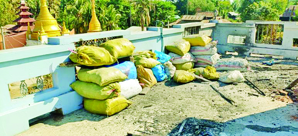 ထို့ပြင် အကြမ်းဖက်သမားများသည် ကျေးရွာရှိ ဘုရားစေတီပုထိုးများ၊ တံတားဦးဘုန်းတော်ကြီးကျောင်း၊ ပဒေသာဘုန်းတော်ကြီးကျောင်းနှင့် သာသနိကအဆောက်အအုံများ၊ ဌာနဆိုင်ရာအဆောက်အအုံများ၊ ကျေးရွာ အခြေခံပညာအလယ်တန်းကျောင်းခွဲနှင့် ဒေသခံပြည်သူများ၏ နေအိမ်များအတွင်းနှင့် ခြံဝင်းများအတွင်း၌ အခြေပြု၍ ဘန်ကာများ၊ သဲအိတ်များ၊ ကတုတ်ကျင်းများဖြင့် အခိုင်အမာ ခံစစ်တည်ဆောက်ပြီး ဘုရားစေတီများ၊ သာသနိကအဆောက်အအုံများ၊ တန်ဆောင်းများနှင့် စာသင်ကျောင်းများကို အကာအကွယ်ရယူ၍ ခုခံတိုက်ခိုက်ခြင်း၊ ကျေးရွာတံတားအား ဖောက်ခွဲဖျက်ဆီးပြီး အကာအကွယ်ပြုလုပ်ထားခြင်း၊ ဘုန်းတော်ကြီးကျောင်းဝင်းများနှင့် ကျေးရွာလမ်းများ၌ လက်လုပ်မိုင်းများ ထောင်ထားခြင်းတို့ လုပ်ဆောင်ထားသည်ကို တွေ့ရှိခဲ့ရကြောင်းနှင့် ကျေးရွာအတွင်း၌ လက်လုပ်မိုင်းအန္တရာယ် ကင်းဝေးစေရေးအတွက် လုံခြုံရေးတပ်ဖွဲ့ဝင်များက မိုင်းရှင်းလင်းရေးလုပ်ငန်းများကို ဆောင်ရွက်ပေးလျက်ရှိကြောင်း သိရသည်။