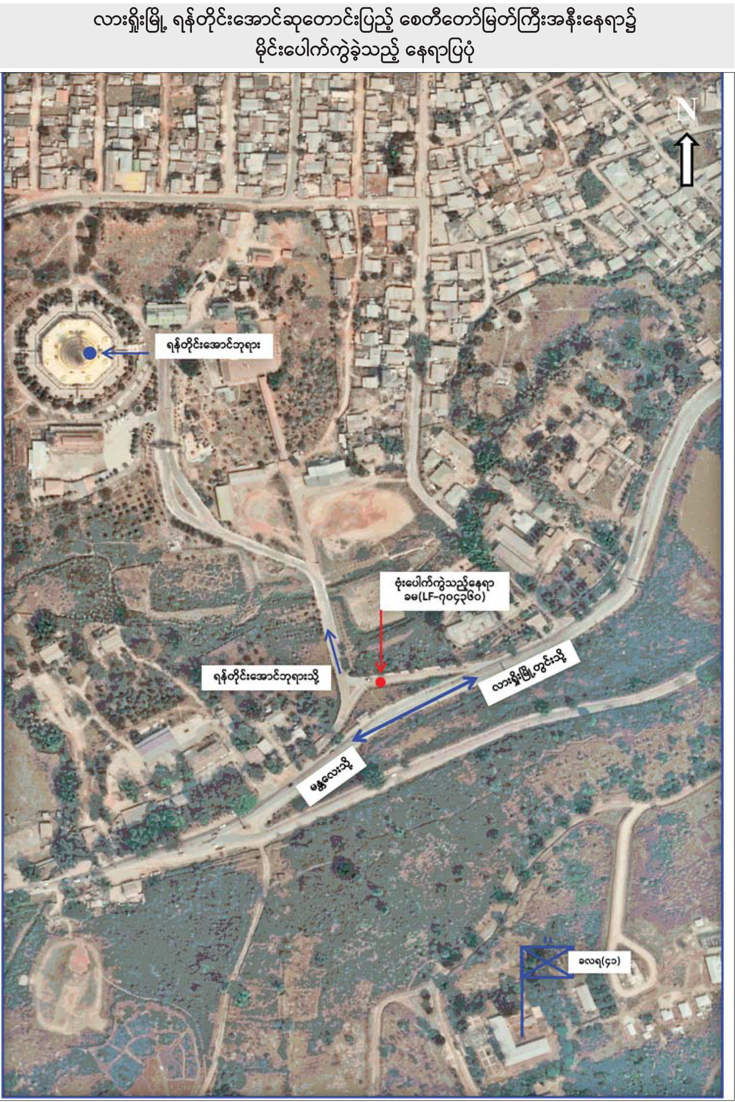 ရှမ်းပြည်နယ် (မြောက်ပိုင်း)လားရှိုးမြို့ ရပ်ကွက်(၁)၊ မြို့အဝင်မုခ်ဦးအနီး ရန်တိုင်းအောင်ဘုရား ဝင်းအရှေ့ပန်းခြံအနီးရှိ ကားများရပ်နားထားသည့်နေရာ၌ ယနေ့နံနက်ပိုင်းက PDF အမည်ခံအကြမ်း ဖက်သမားများက လက်လုပ်ဗုံးဖြင့် ဖောက်ခွဲတိုက်ခိုက်ခဲ့ကြောင်း သိရသည်။