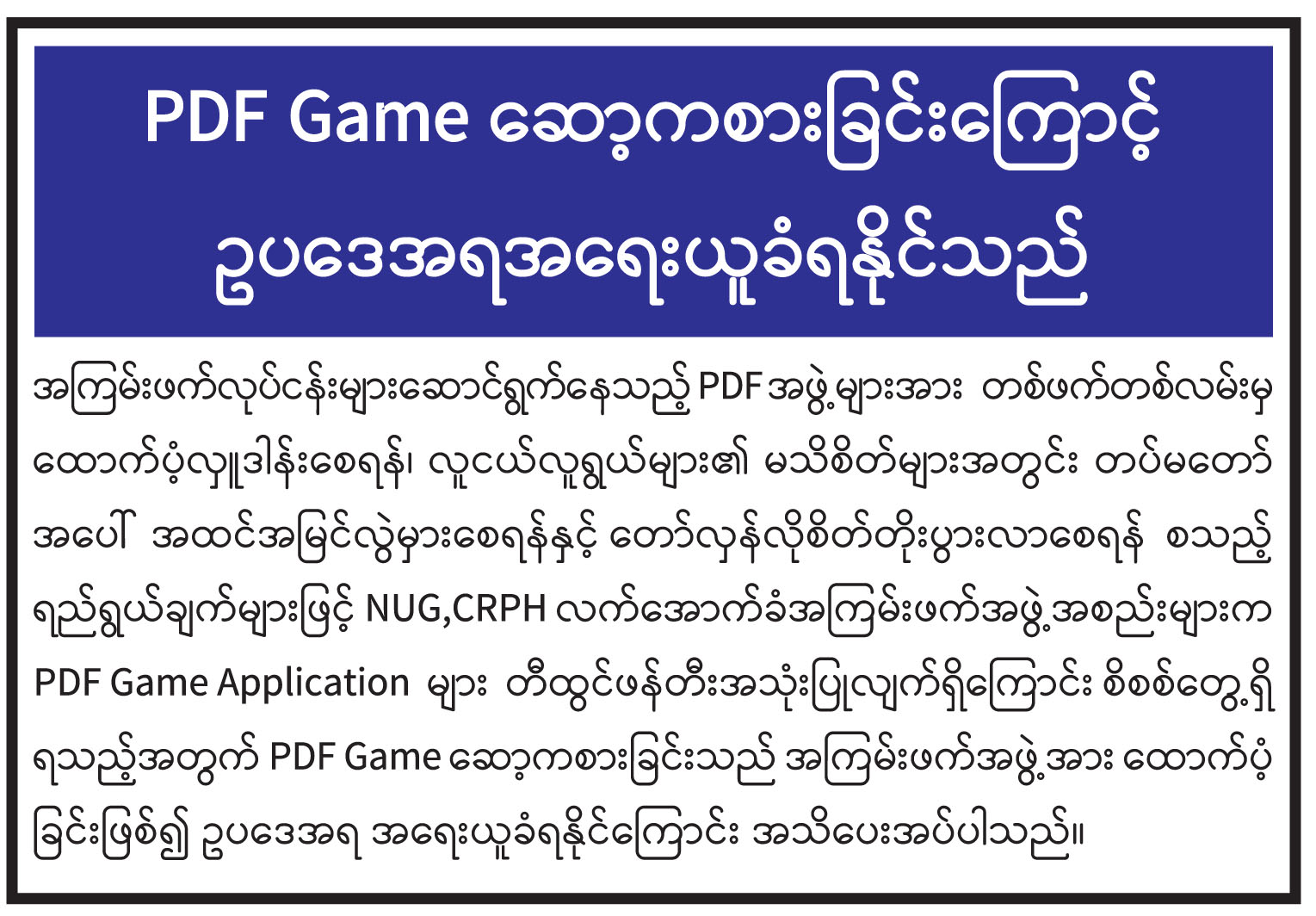 PDF Game ဆော့ကစားခြင်းကြောင့် ဥပဒေအရအရေးယူခံရနိုင်သည်