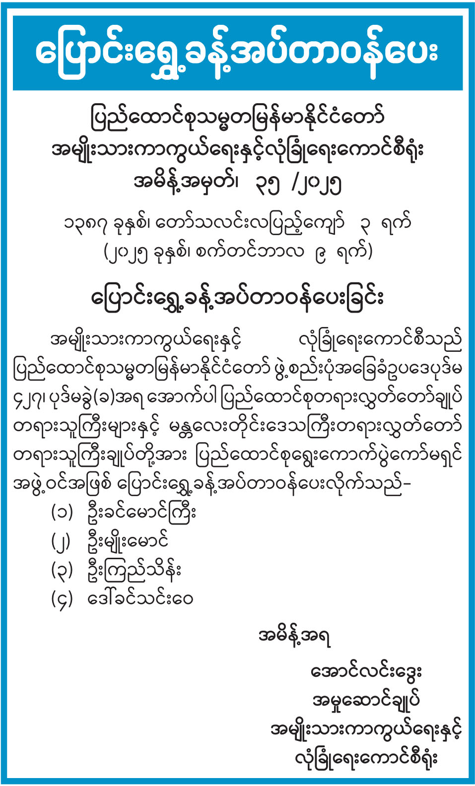 ပြောင်းရွှေ့ခန့်အပ်တာဝန်ပေး