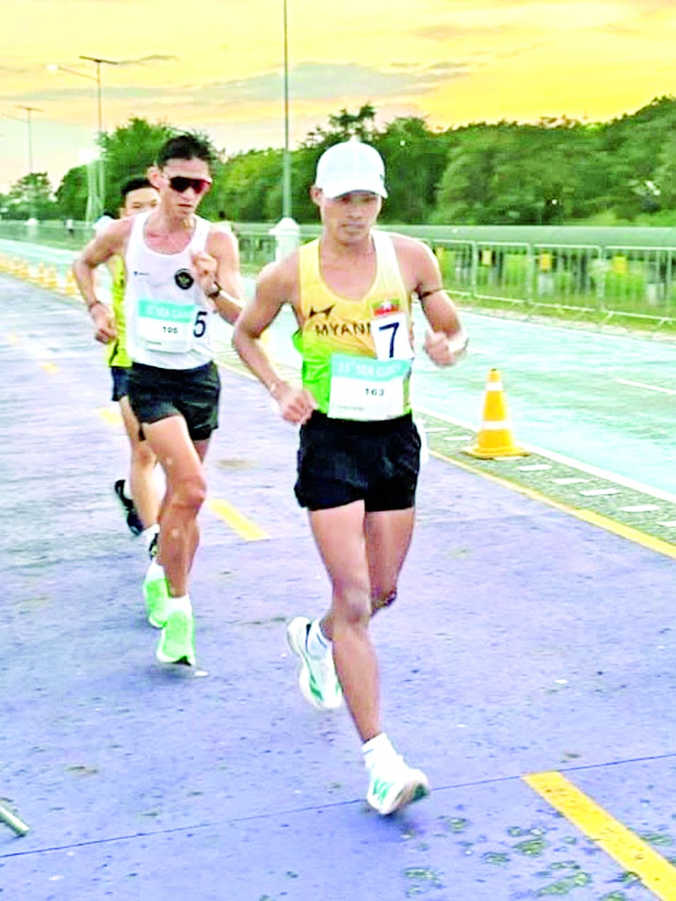 မြန်မာပြေးခုန်ပစ်အဖွဲ့သည် လမ်းလျှောက် ပြိုင်ပွဲတွင် ငွေတံဆိပ် နှစ်ခုရရှိပြီး အမျိုးသားပြိုင်ပွဲတွင် နိုင်လင်းထွန်း၊ အမျိုးသမီးပြိုင်ပွဲတွင် ဇင်မေထက်တို့က ရယူပေးနိုင်ခဲ့ခြင်းဖြစ်သည်။ အမျိုးသားပြိုင်ပွဲတွင် အင်ဒိုနီးရှားက ရွှေတံဆိပ်၊ နိုင်လင်းထွန်း (မြန်မာ)က ငွေတံဆိပ်၊ ဗီယက်နမ်က ကြေးတံဆိပ်၊ အမျိုးသမီးပြိုင်ပွဲတွင် အင်ဒိုနီးရှားက ရွှေတံဆိပ်၊ ဇင်မေထက်(မြန်မာ)က ငွေတံဆိပ်၊ ထိုင်းက ကြေးတံဆိပ်ရရှိသည်။ လမ်းလျှောက်ပြိုင်ပွဲကို ဒီဇင်ဘာ ၁၄ ရက် ညနေပိုင်းတွင် ပြုလုပ်ခဲ့ခြင်း ဖြစ်သည်။