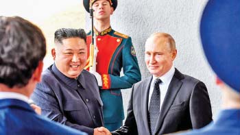 ရုရှားသမ္မတ ဗလာဒီမာပူတင်နှင့် ဧပြီ ၂၅ ရက်က ပြုလုပ်သည့် ရှားတောင့် ရှားခဲ ထိပ်သီးဆွေးနွေးပွဲ အတွင်း ကင်၏ မှတ်ချက်စကားသံ ပေါ်ထွက်ခဲ့သည်။ နိုင်ငံတကာ အရေးယူပိတ်ဆို့မှုများ ဖြေလျှော့ပေးလာစေရေးအတွက် မြောက်ကိုရီးယားနိုင်ငံ၏ တောင်းဆိုချက်များအပေါ် ပိုမိုအာရုံစိုက်လာစေရန် ရည်ရွယ်ပုံရသည့် ပြောဆိုချက်ပေလောဟူ၍ နိုင်ငံရေးသုံးသပ်သူများက ယူဆနေကြစဉ်မှာပင် ဗလာဒီဗိုစတော့ခ်ထိပ်သီးဆွေးနွေးပွဲ၏ ရလဒ်များ အသို့ရှိလာနိုင်သည်ကို ကျွန်ုပ် ဆက်လက်စေ့ငု ကြည့်မိလေသော် အရှေ့တိုင်း၏ လှုပ်လှုပ်ရွရွ ကိုရီးယားကျွန်းဆွယ် ငြိမ်းချမ်းရေးအတွက် ရည်မျှော်သော ဆောင်ရွက်ချက်များအနက် အမှတ်မထင် ပေါ်ထွက်လာသည့် ရုရှား၏ သံတမန်ရေး ပနံသင့်လှုပ်ရှားကွက်များကို သတိပြုမိလေသည်။