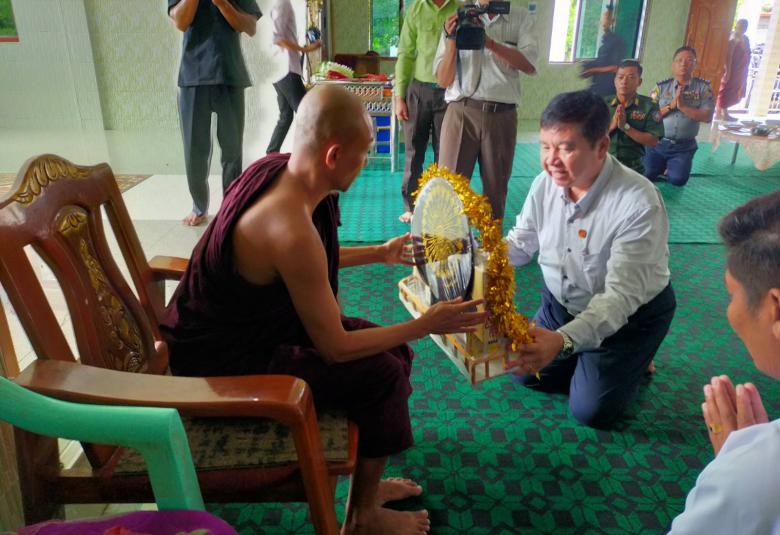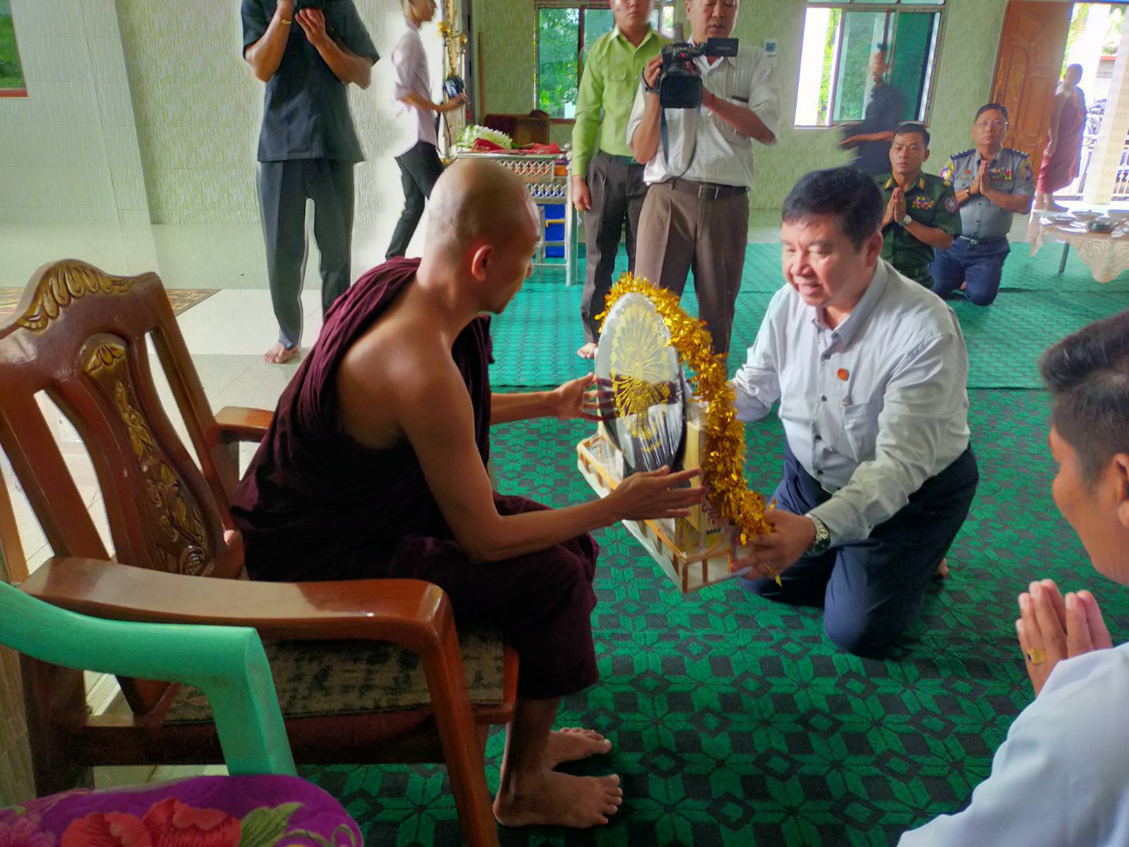 ဆက်လက်၍ ပြည်နယ်ဝန်ကြီးချုပ်နှင့်အဖွဲ့သည် ဗြူးခြေထောက် အပင် ၃၀၀၊ သမဲ့ ပင် ၁၂၀၀၊ အုန်းပျိုးပင် ၄၀ စုစုပေါင်း ၁၇၄၀ အား စုပေါင်းစိုက်ပျိုးသည်။ ယင်းနောက် ပြည်နယ်ဝန်ကြီးချုပ်ဦးနှင့်အဖွဲ့သည် ပင်လယ်ကမ်းခြေမှ ဆယ်အိမ်စု ကျောင်းတိုက်သို့ သွားရောက်ပြီး ကျောင်းထိုင်ဆရာတော် ဘဒ္ဒန္တဝါသဋ္ဌအား ဖူးမြော်၍ လှူဖွယ်ဝတ္ထုပစ္စည်းများ ဆပ်ကပ်ကာ အလှပ်ကျေးရွာ သာယာကုန်းပိုင်း ရှိ Cyclone shutter ဆောက်လုပ်မည့်နေရာသို့ သွားရောက်ကြည့်ရှုကာ လိုအပ်သည်များ မှာကြားခဲ့သည်။