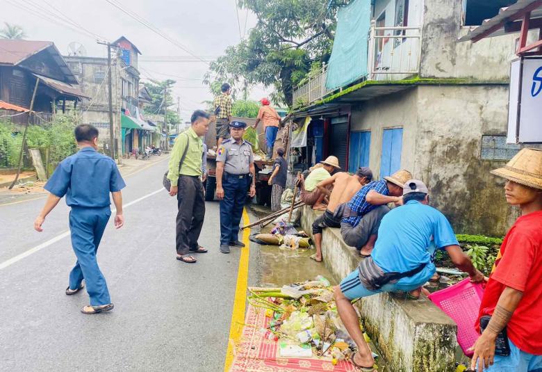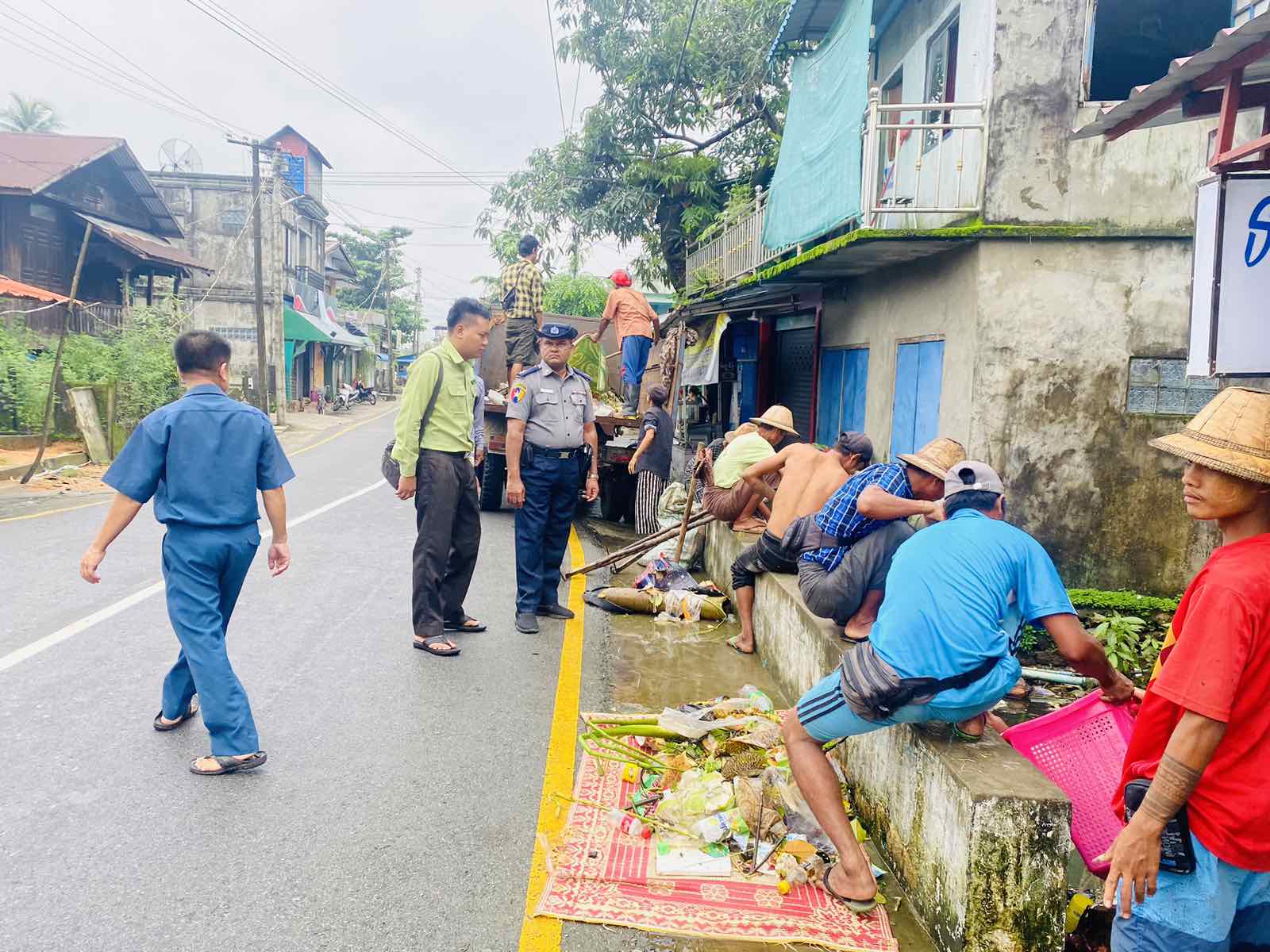 မွန်ပြည်နယ်၊ ပေါင်မြို့နယ်၌ ရေကြီးရေလျှံသည့်ဘေးမှ ကာကွယ်ရန် ရေမြောင်းများရှိ အမှိုက်များအား ဆယ်ယူလျက်ရှိရာ မြို့နယ်စီမံအုပ်ချုပ်ရေးအဖွဲ့ဥက္ကဋ္ဌနှင့် အဖွဲ့ဝင်များက ဩဂုတ် ၈ ရက် နံနက်ပိုင်းက သွားရောက်ကြည့်ရှုခဲ့သည်။