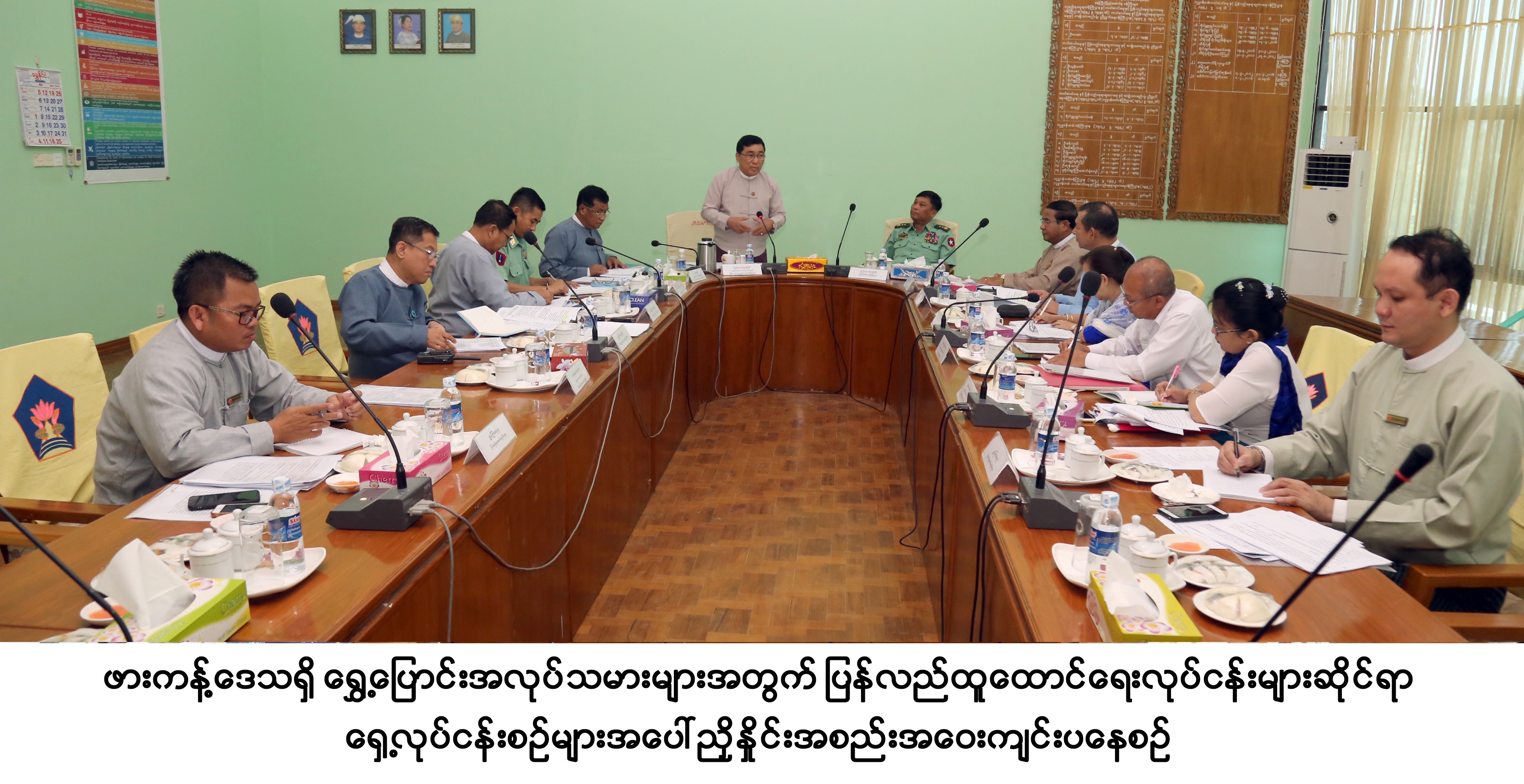 ဖားကန့်ဒေသရှိ ရွှေ့ပြောင်းအလုပ်သမားများအတွက် ပြန်လည်ထူထောင်ရေးလုပ်ငန်းများဆိုင်ရာ ရှေ့လုပ်ငန်းစဉ်များပေါ် ညှိနှိုင်းအစည်းအဝေးကို ယနေ့နံနက်ပိုင်းက နေပြည်တော်၊ လူမှုဝန်ထမ်း၊ ကယ်ဆယ်ရေးနှင့် ပြန်လည်နေရာချထားရေးဝန်ကြီးဌာန၊ အစည်းအဝေးခန်းမတွင် ကျင်းပသည်။