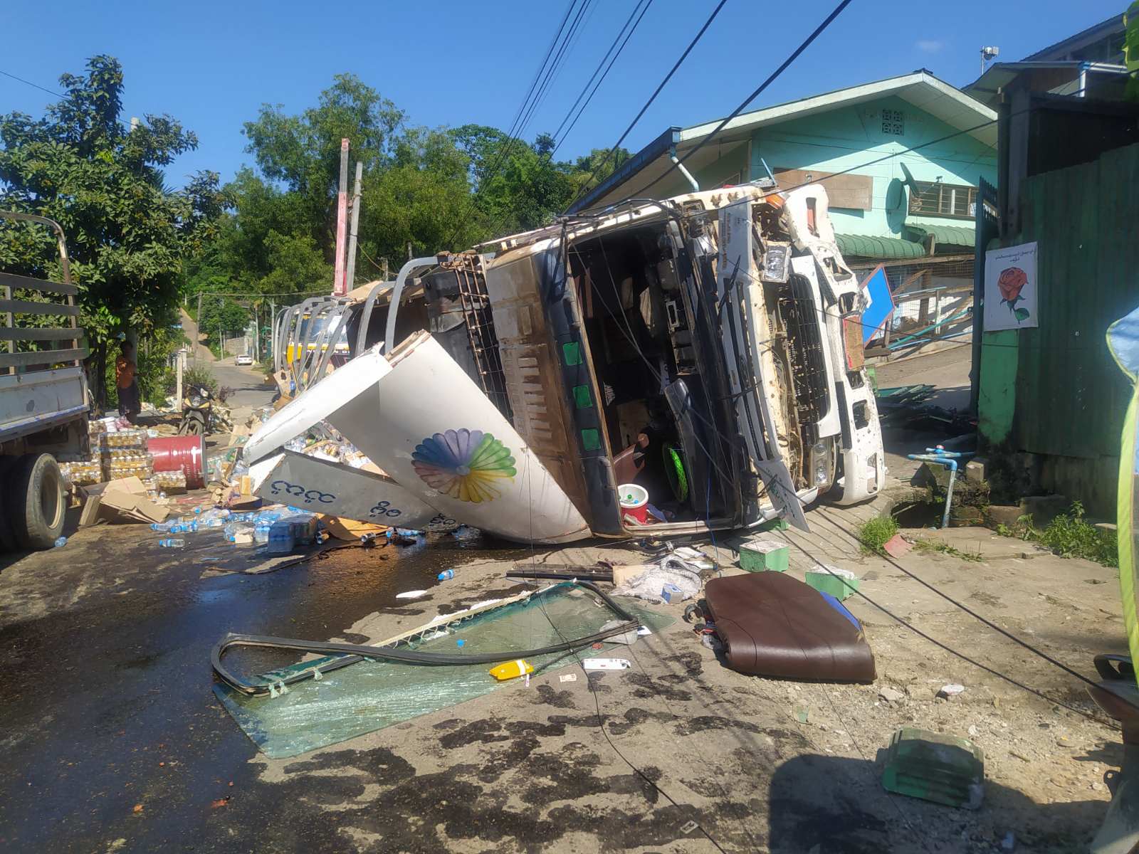 မန္တလေးမြို့မှ ကုန်များ တင်ဆောင်လာပြီး ဖားကန့်ကုန်စုံဆိုင်များအား ဖြန့်ဝေရန်အတွက် ယာဉ်မောင်း ကသာမြို့နေ အသက် ၂၉ နှစ်အရွယ် စိုးထက်အောင်နှင့် ယာဉ်အကူ ကသာမြို့နေ အသက် ၄၆ နှစ်အရွယ် ဦးသန်းဝေတို့ မောင်းနှင်လာသော ၁၃ ဘီးယာဉ်သည် မော်ဝမ်းရပ်ကွက် အထက်လမ်း ပန်းရွှေဇင်အလှပြင်ဆိုင်ရှေ့ အုတ်ခုံအား ဘရိတ်ပေါက်ပြီး အရှိန်မထိန်းနိုင်ဘဲ တိုက်မိ၍ ယာဉ်တိမ်းမှောက်မှုဖြစ်ပွားခြင်းဖြစ်သည်။