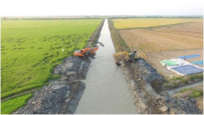 စပါးစိုက်ပျိုးမှု အောင်မြင်ဖြစ်ထွန်းလျက်ရှိသည့် ဖျာပုံမြို့နယ်အတွင်း ယခုနှစ်စိုက်ပျိုးသည့် နွေစပါးအောင်ရေ လုံလောက်စွာ ရရှိရေးနှင့် လာမည့်မိုးတွင်းကာလ မိုးစပါးရေကြီးနစ်မြုပ်မှု လျော့ပါးသက်သာစေရေးအတွက် ဖျာပုံမြို့ နယ် ဆည်မြောင်းနှင့် ရေအသုံးချမှု စီမံခန့်ခွဲရေးဦးစီးဌာနမှ သမ္ဘာန်အေး-ကျိုက္ကဘာတာ ဧရိယာအတွင်း တိမ်ကောနေသည့် ချောင်း၊ မြောင်းများအား ဒေသလိုအပ်ချက်ပေါ် မူတည်၍ ဦးစားပေးအလိုက် တူးဖော်ဆောင်ရွက် ပေးလျက်ရှိရာ လက်ရှိတွင် ထိပ်ဝအကျယ်ပေ (၃၀)၊ အောက်ခြေအကျယ် (၂၂) ပေ၊ ပျမ်းမျှ အနက် (၅) ပေနှင့် အလျား (၆) မိုင်ကျော်ရှိ ကျိုက္ကဘာ-အလန်းဖလွတ်မြောင်းအား နွေစပါးစိုက်ပျိုးရာသီအမီ တူးဖော်ဆောင်ရွက် ပေးလျက်ရှိကြောင်း သိရသည်။