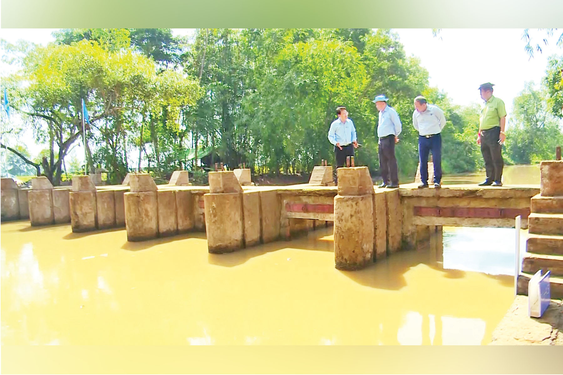 ယင်းနောက် ကြက်ဖမွေးဇောင်း ကျွန်းပတ်တာသို့ ရေချိုပေးဝေလျက်ရှိသည့် နောင်တော်ကြီး-သိန္နီမြောင်းပေါ်တွင် တည်ဆောက်ထားသော သကံရေတံခါးပြုပြင် ဆောင်ရွက်နေမှု ၆ ပေ x ၆ ပေ ရေတံခါးခြောက်ချပ် ပြန်လည်ပြုပြင်မည့် အခြေအနေများကို ကြည့်ရှုစစ်ဆေးသည်။