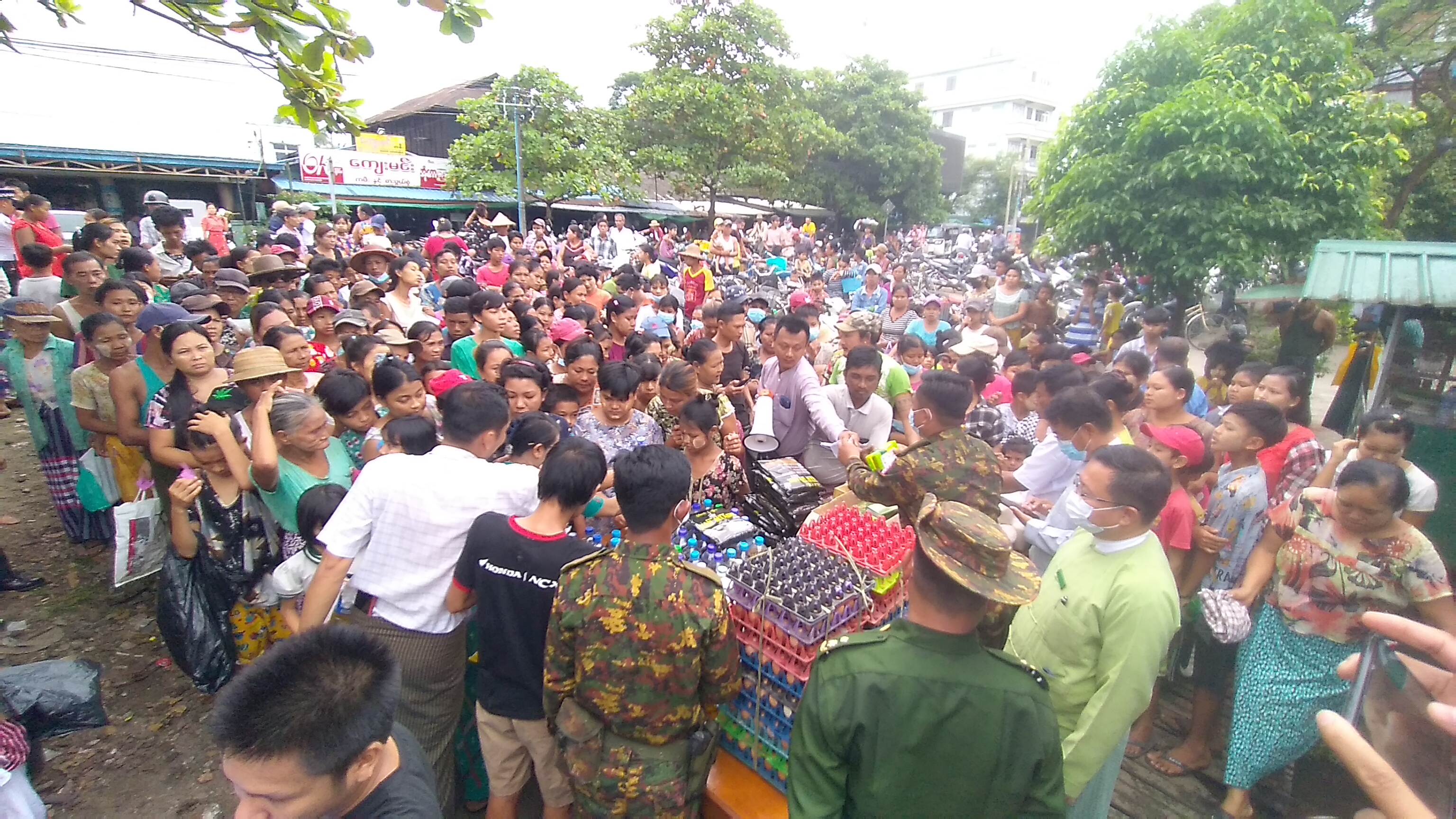 ထိုသို့ရောင်ချပေးရာတွင် အချွန်ဆန်တစ်ပြည် (၁၅၀၀)ကျပ်နှုန်းဖြင့် လည်းကောင်း၊ ဆားတစ်ပိဿာ (၅၅၀)ကျပ်နှုန်းဖြင့် လည်းကောင်း၊ ကြက်ဥ(၃)လုံး (၅၀၀)ကျပ်နှုန်းဖြင့် လည်းကောင်း၊ စားအုန်းဆီတစ်ပိဿာလျှင် (၅၀၀၀)ကျပ်နှုန်းဖြင့် လည်းကောင်း၊ တပ်မတော်ထုတ်ကုန်များအား ပေါက်စျေးနှုန်းအလိုက် ရောင်းချပေးခဲ့ကြသည်။