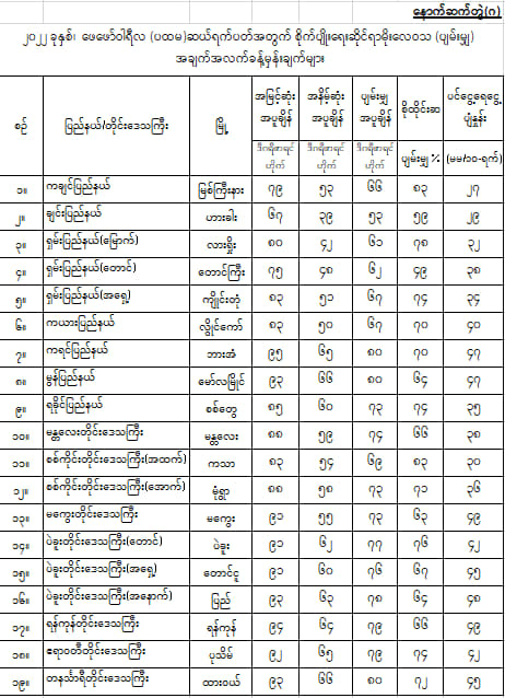 (ဖြစ်နိုင်စွမ်းပင်ငွေ့ရေငွေ့ပျံနှုန်းအားHARGREAVES METHODဖြင့် တွက်ချက်ထားပါသည်။)