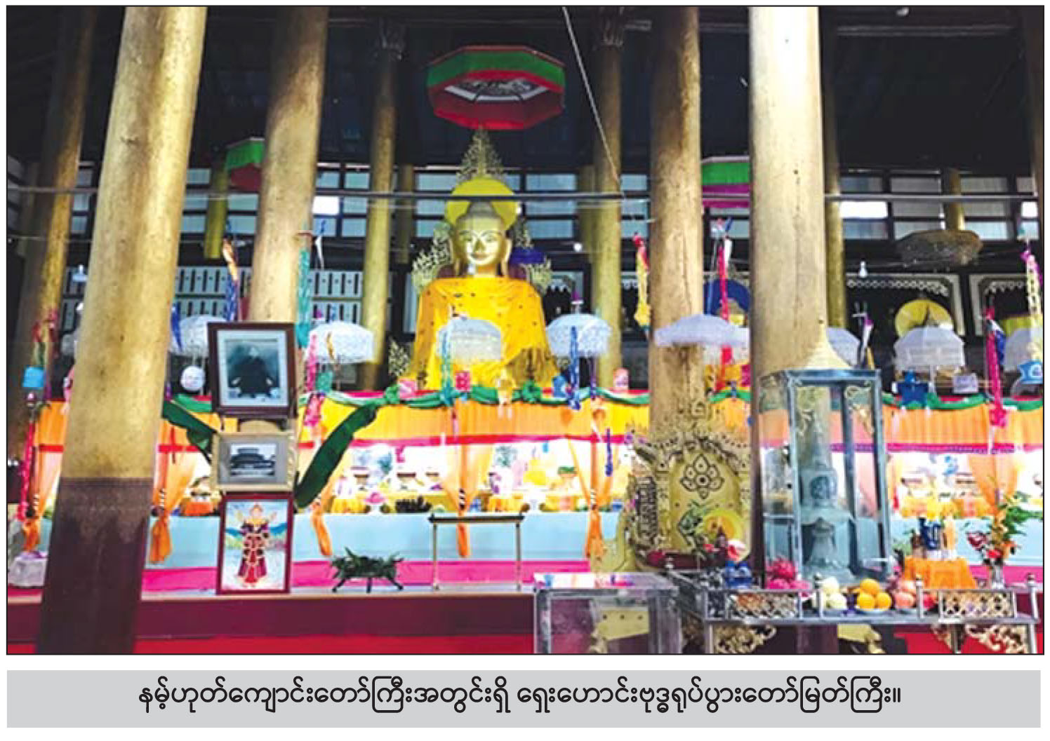 ကျောင်းဆောင်ပေါ်၌ နှစ်ကာလ မခန့်မှန်းနိုင်သော ရှေးဟောင်းဆင်းတုတော်များကို ဖူးတွေ့ရ၏။ ထို့ပြင် ရှေးခေတ်ရှမ်းစော်ဘွားများ အသုံးပြုခဲ့သည်ဟု ယူဆရပြီး ရှေးဟောင်းပလ္လင်ဖြစ်ဟန် တူသည့် သစ်သားပလ္လင်ကိုလည်း တွေ့မြင်ရပြန်သည်။ ကျောင်းကြီးအတွင်း၌ ရှေးဟောင်းပုံစံ သစ်သားပွတ်လုံးများဖြင့် အခန်းကန့်များ၊ သစ်သား ဗီရို၊ ရှေးပန်းအိုး၊ သံပတ်ပေးတိုင်ကပ်နာရီများကို လည်း မြတ်နိုးစွာ ထိန်းသိမ်းထားနိုင်သည်ကို မြင်တွေ့ခဲ့ရသည်။