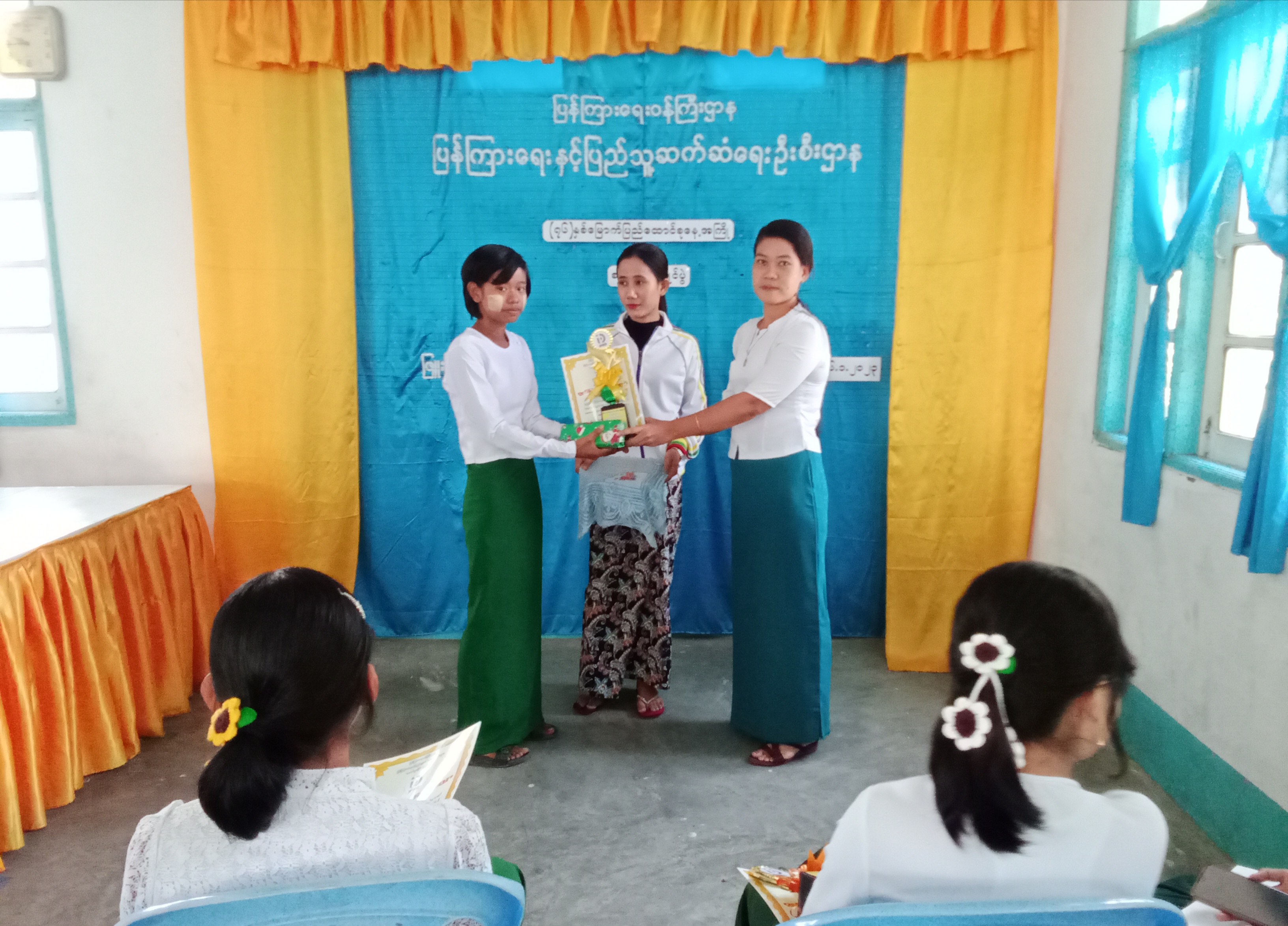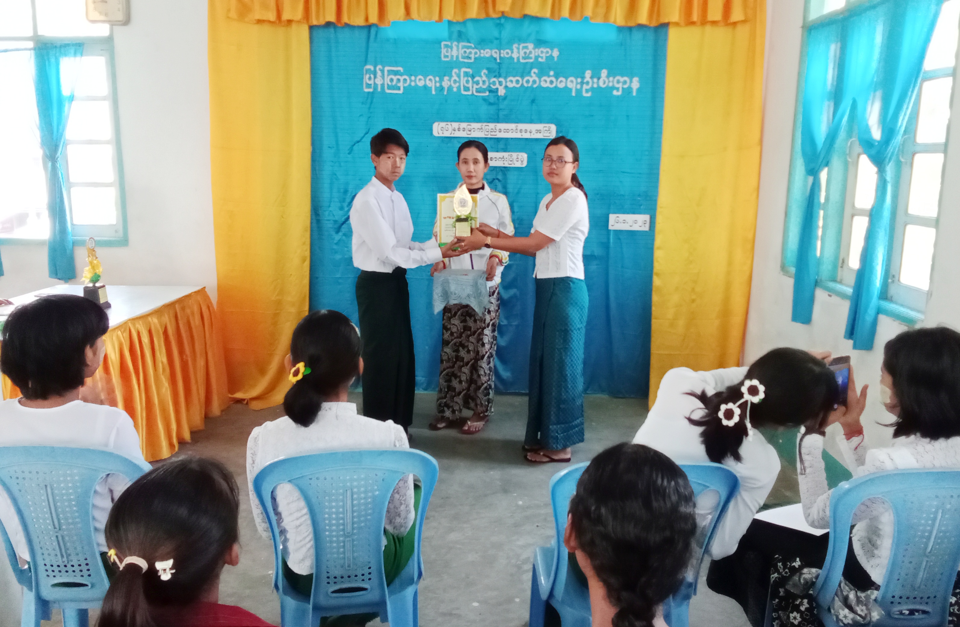 ဆက်လက်၍ တက်ရောက်လာကြသော ကျောင်းသား/ ကျောင်းသူများက ဖြူးမြို့နယ် ပြန်ကြားရေးနှင့်ပြည်သူ့ဆက်ဆံရေးဦးစီးဌာနမှ ခင်းကျင်းပြသထားသော သုတ၊ရသ စာအုပ်/ စာစောင်များကို လေ့လာဖတ်မှတ်ခြင်း၊ အသိပညာပေး နံရံကပ်ပြဘုတ်များကို လေ့လာကြည့်ရှုခဲ့ကြပြီး စည်လုံးညီညွတ်ခြင်းကို ကိုယ်စားပြုသည့် ပူဖောင်းတာဝါဆောက် ပြိုင်ပွဲကို အဖွဲ့ခွဲ၍ ယှဉ်ပြိုင်ခဲ့ကြရာ မြို့နယ်ပြန်ကြားရေးနှင့်ပြည်သူ့ဆက်ဆံရေး ဦးစီးဌာနဝန်ထမ်းများက ဆုလက်ဆောင်များ ပေးအပ်ခဲ့ကြောင်း သိရသည်။