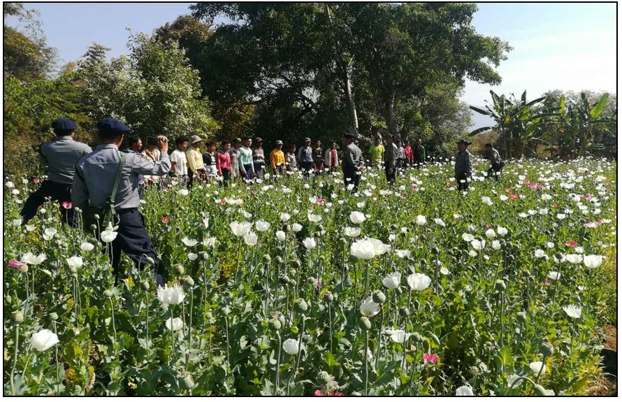 ဖယ်ခုံမြို့နယ်၊ လဟယ်ကျေးရွာ အရှေ့တောင်ဘက် အမြင့် ၂ ပေ ခန့်ရှိ ဘိန်းစိုက်ခင်း ၁၂ ဧကခန့်အား ဖယ်ခုံမြို့နယ် ရဲတပ်ဖွဲ့မှူး ရဲမှူးလင်းနိုင် ဦးစီးပူးပေါင်းအဖွဲ့မှ ဖေဖော်ဝါရီ ၁၆ ရက် နံနက် ၉ နာရီတွင် ဖျက်ဆီးရှင်းလင်းခဲ့ကြောင်း ရဲပြန်ကြားမှ သိရသည်။