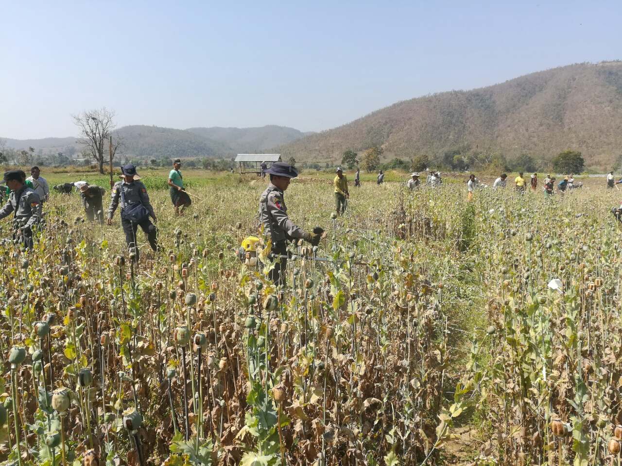 ဖယ်ခုံမြို့နယ်၊ လွယ်စေတီကျေးရွာ အနောက်ဘက် ၂ ဖာလုံခန့်အကွာ၌ အမြင့် ၂ ပေခန့်ရှိ ဘိန်းစိုက်ခင်း (၁၀)ဧကခန့်အား ဖယ်ခုံမြို့မရဲစခန်းမှူး ဒုတိယရဲမှူး သိန်းဆွေ ဦးစီးပူးပေါင်းအဖွဲ့မှ ဖေဖော်ဝါရီ ၂၀ ရက်က ဖျက်ဆီးရှင်းလင်းခဲ့ကြောင်း သိရှိရသည်။