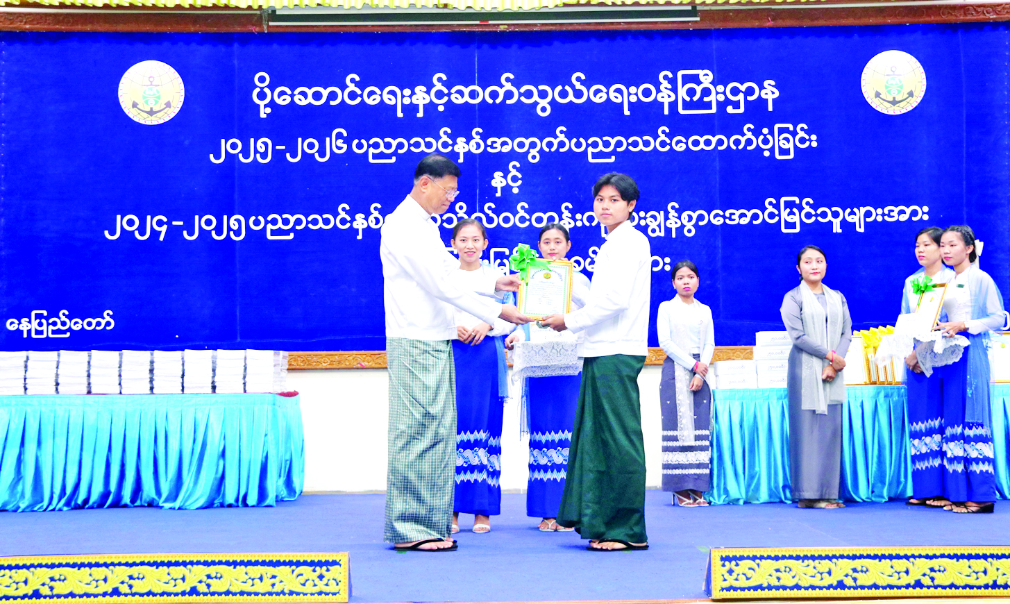 ၂၀၂၅-၂၀၂၆ ပညာသင်နှစ် အခြေခံပညာကျောင်းများတွင် တက်ရောက်သင်ကြားလျက်ရှိသည့် ပို့ဆောင်ရေးနှင့် ဆက်သွယ်ရေးဝန်ကြီးဌာန ဝန်ထမ်းများ၏ သားသမီးများ ပညာသင်ထောက်ပံ့ခြင်းနှင့် ၂၀၂၄-၂၀၂၅ ပညာသစ်နှစ် တက္ကသိုလ်ဝင်စာမေးပွဲတွင် ဂုဏ်ထူးဖြင့် ထူးချွန်စွာအောင်မြင်ခဲ့ကြသည့် ဝန်ထမ်းများ၏ သားသမီးများအား ဂုဏ်ပြုဆုချီးမြှင့်ပွဲ အခမ်းအနားကို ယနေ့ နံနက်ပိုင်းတွင် ပို့ဆောင်ရေးနှင့် ဆက်သွယ်ရေးဝန်ကြီးဌာန ရုံးအမှတ်(၂)၌ ကျင်းပ သည်။