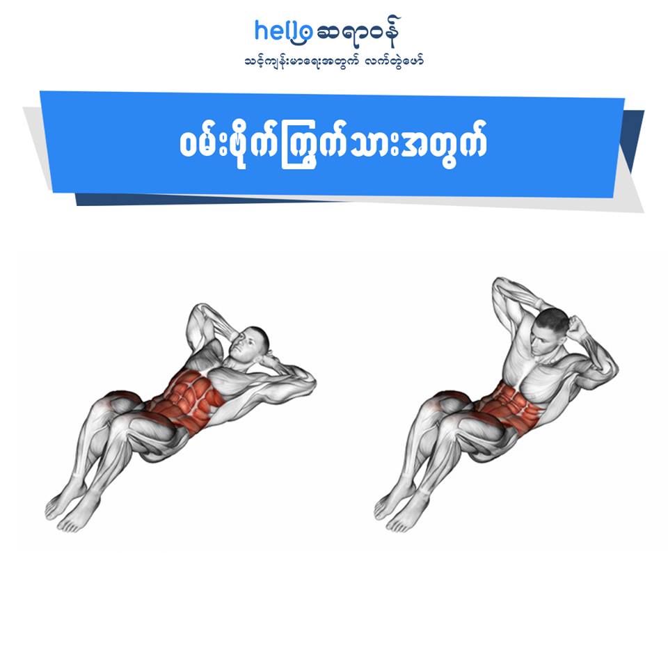 ယောကျာ်းလေးပဲဖြစ်ဖြစ်၊ မိန်းကလေးပဲဖြစ်ဖြစ် လေ့ကျင့်ခန်းလုပ်တဲ့အခါမှာ ဘယ်လေ့ကျင့်ခန်းက ဘယ်ကြွက်သားနဲ့ဘယ်အစိတ်အပိုင်းတွေကို အဓိကကြီးထွားကျစ်လစ်စေလဲဆိုတာ သိထားဖို့အတွက် ပုံတစ်ပုံချင်းစီကို လေ့လာကြည့်လိုက်ရအောင်နော်။