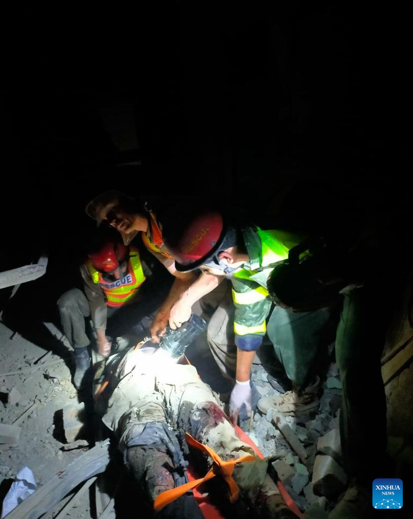 ကယ်ဆယ်ရေးအဖွဲ့သည် အဆောက်အဦအပျက်အစီး၏အောက်တွင် ပိမိနေသူများအား ကယ်ဆယ်မှုများ လုပ်ဆောင်လျက် ရှိသည်ဟု သိရသည်။