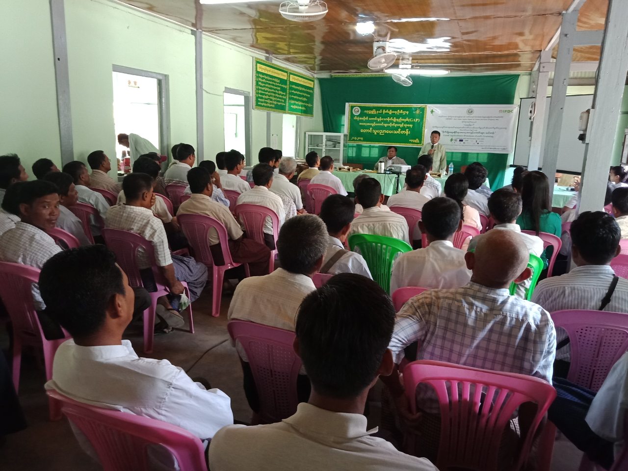 ဆက်လက်၍ မြေအမျိုးအစားနှင့်ဓာတ်မြေသြဇာသွင်းအားစုများ စနစ်တကျအသုံးပြုစိုက်ပျိုးနည်း၊ သီးနှံမျိုးကောင်းမျိုးသန့်များ စနစ်တကျရွေးချယ်စိုက်ပျိုးနည်း၊ GAP စိုက်ပျိုးရာတွင် တောင်သူများလိုက်နာ ဆောင်ရွက်သင့်သည့် အချက်များကို သင်တန်းပို့ချဆွေးနွေးကြသည်။