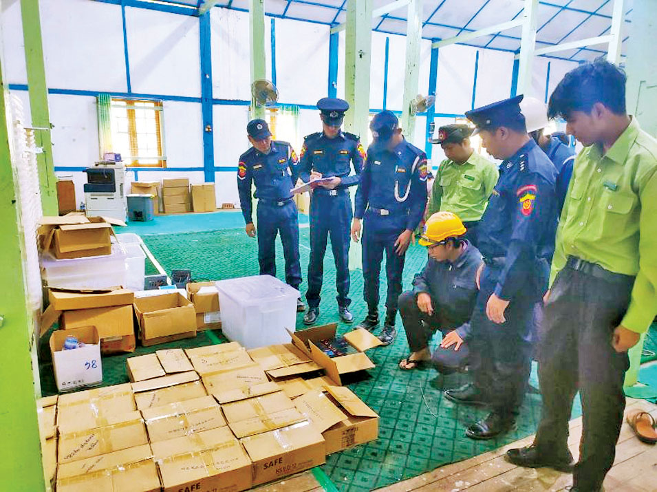 မကွေးတိုင်းဒေသကြီး ပခုက္ကူမြို့၌ ပါတီစုံဒီမိုကရေစီအထွေထွေရွေးကောက်ပွဲ အောင်မြင်စွာ ကျင်းပနိုင်ရေးအတွက် မဲပေးစက်ပစ္စည်းများ သိမ်းဆည်းထားရှိသောနေရာများ မီးဘေးလုံခြုံရေးအတွက် ယနေ့နံနက်ပိုင်းက ကွင်းဆင်းစစ်ဆေးကြသည်။
