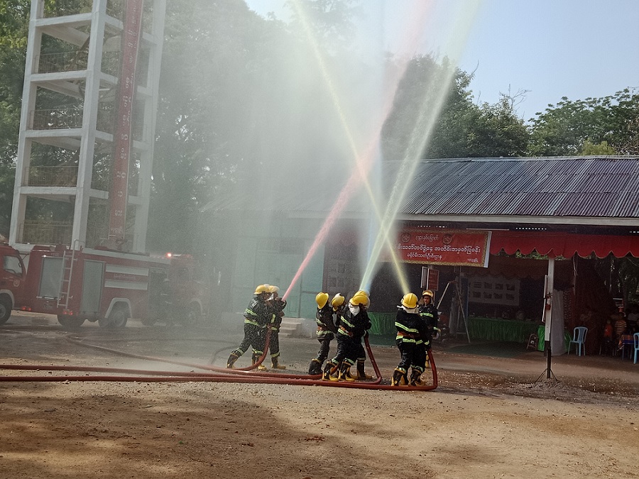 ထို့နောက် မီးသတ်တပ်ဖွဲ့များက ပြောင်းလဲလာသည့် ပေးအပ်ထားသော မီးသတ်ယာဉ်များ၊ စက်ပစ္စည်းကိရိယာများဖြင့် ရှာဖွေရေး ကယ်ဆယ်ရေးလုပ်ငန်းများကို စွမ်းရည်ပြသကြသည်။