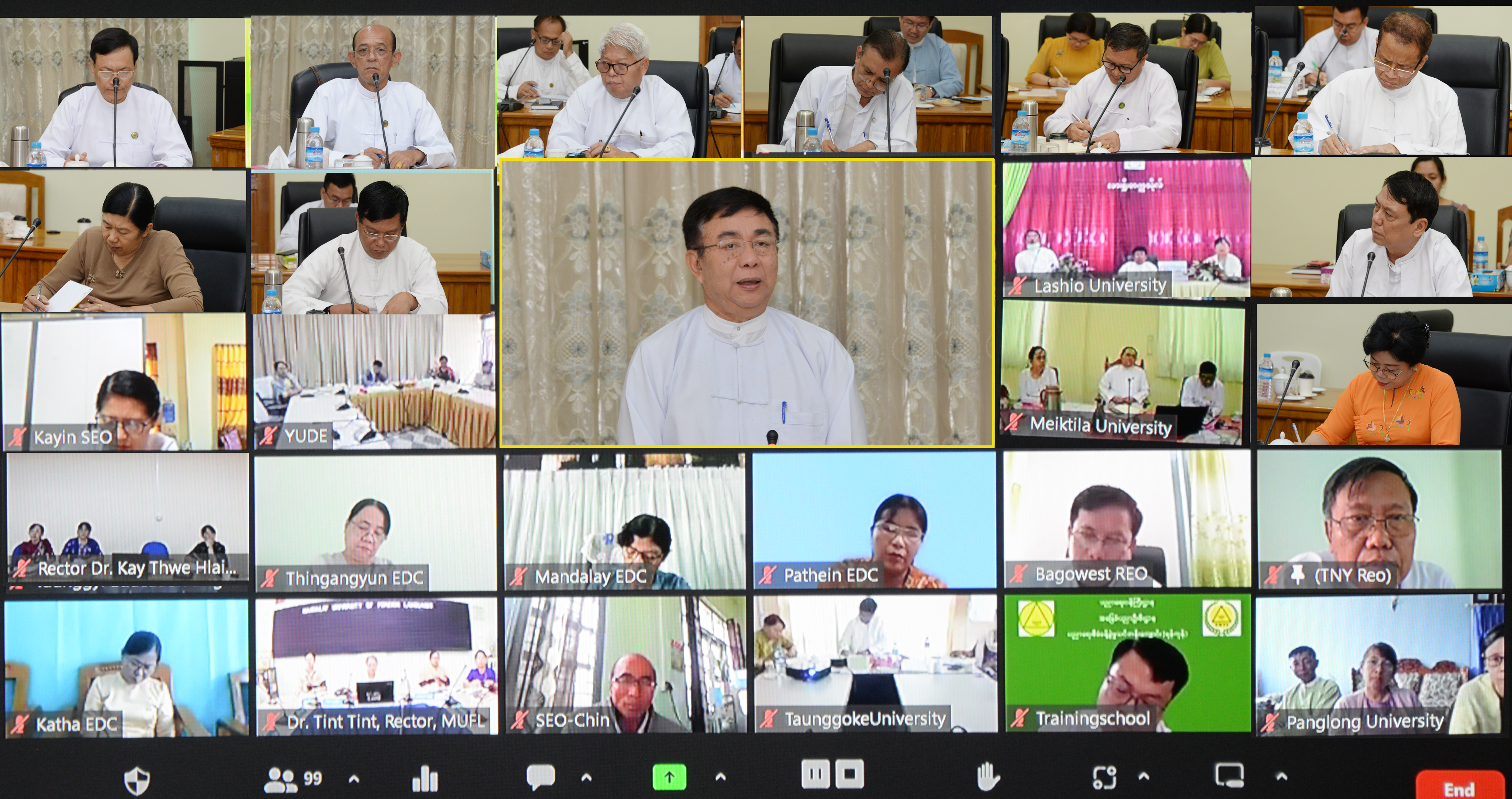 တက္ကသိုလ်ပါမောက္ခချုပ်များ၊ ပညာရေးဒီဂရီကောလိပ် ကျောင်းအုပ်ကြီးများ၊ တိုင်းဒေသကြီး /ပြည်နယ်ပညာရေးမှူးများနှင့် ညှိနှိုင်းအစည်းအဝေးကို ယနေ့ နံနက် ၁၀ နာရီ တွင် နေပြည်တော်ရှိ ပညာရေးဝန်ကြီးဌာန အစည်းအဝေးခန်းမ၌ ဗီဒီယိုကွန်ဖရင့်စနစ်ဖြင့် ကျင်းပသည်။