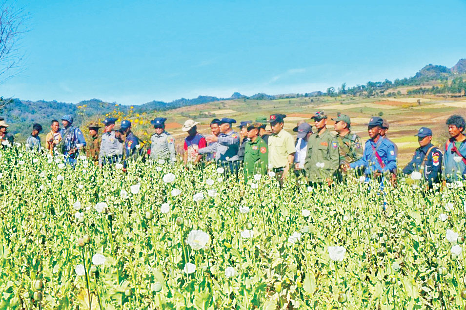 ရှမ်းပြည်နယ်(တောင်ပိုင်း) ပအိုဝ်းကိုယ်ပိုင်အုပ်ချုပ်ခွင့်ရဒေသ ပင်လောင်းမြို့နယ် စင်တောင်းကျေးရွာအုပ်စု ထီတလိကျေးရွာအနောက်ဘက် နှစ်မိုင်ခွဲခန့်အကွာတွင် ပွင့်ဖူးဆဲဘိန်းခင်းများကို ဒီဇင်ဘာ ၂ ရက် နံနက်ပိုင်းကစတင်ကာ မွန်းလွဲပိုင်းအထိ စုပေါင်းဖျက်ဆီးခဲ့ကြသည်။