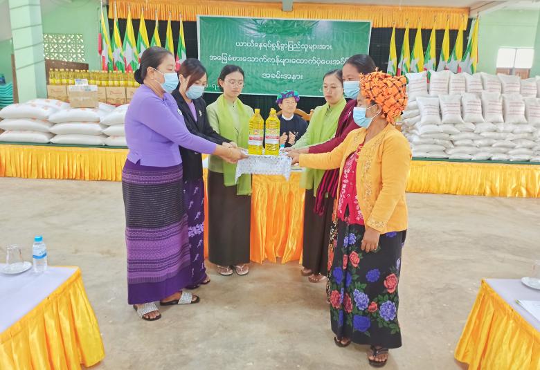 ရှမ်းပြည်နယ်(တောင်ပိုင်း)၊ ပအိုဝ်းကိုယ်ပိုင်အုပ်ချုပ်ခွင့်ရဒေသ၊ ပင်လောင်းမြို့နယ်တွင် ယာယီနေရပ်စွန့်ခွာ ပြည်သူများအား အခြေခံ စားသောက်ကုန်များ ထောက်ပံ့ပေးအပ်ခြင်းကို ဇူလိုင် ၁၈ ရက် နံနက်ပိုင်းက မြို့နယ်ဘက်စုံသုံးခန်းမ၌ ပြုလုပ်သည်။